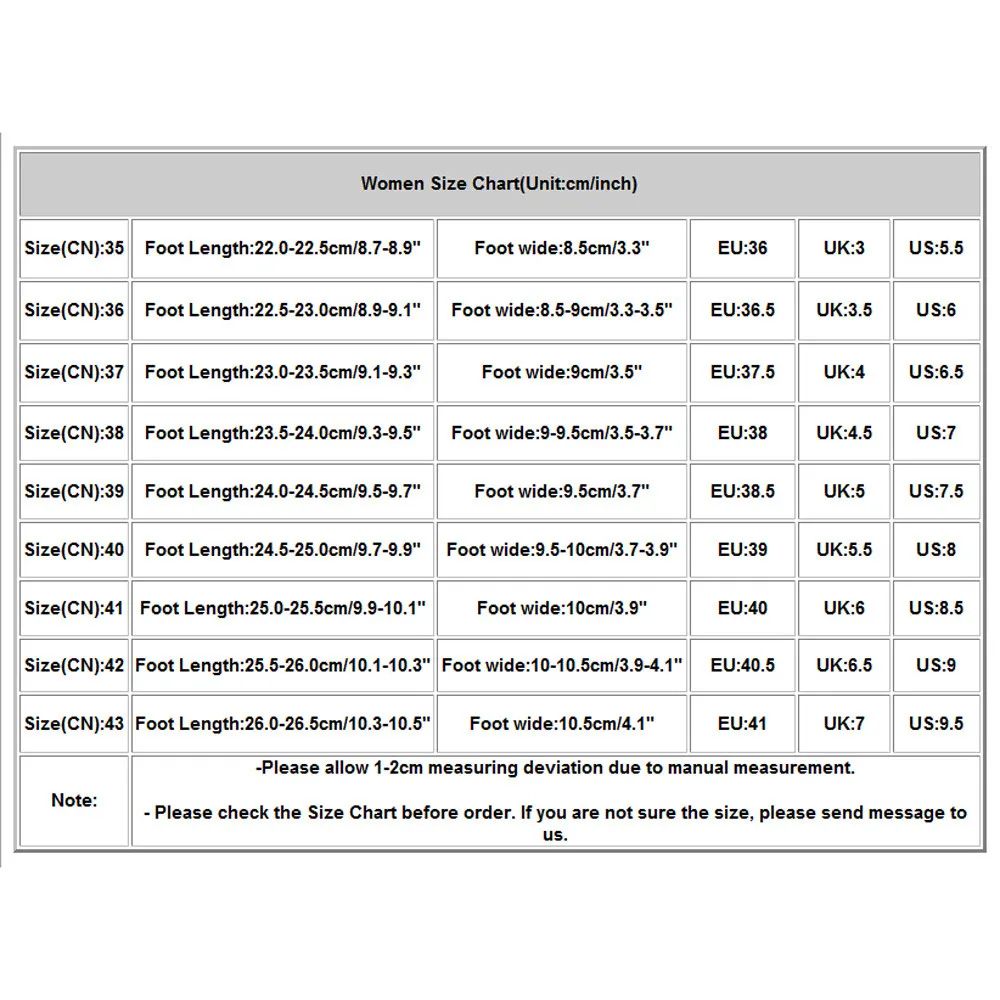 Warm Reminder:Different Shoe Styles,Please Select The Size According To Your Foot Type
