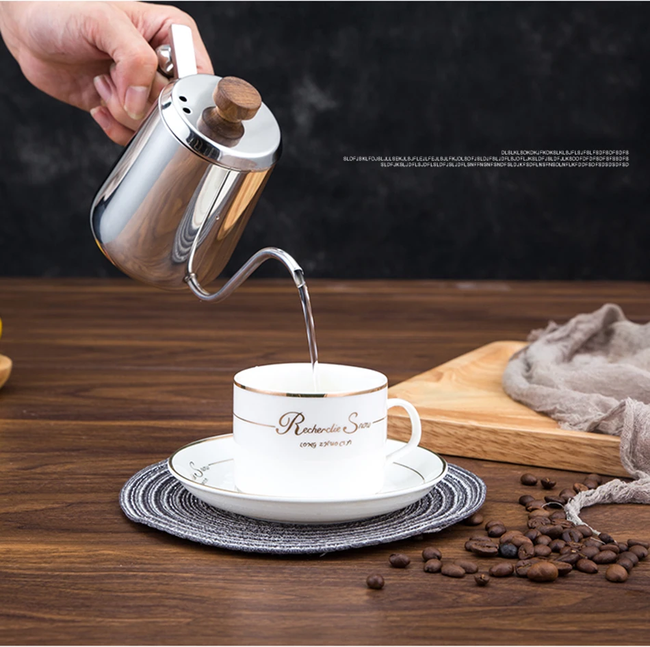 YRP 350/600 ML Long Narrow Spout Coffee Pot Gooseneck Kettle Stainless Steel Hand Drip Kettle Pour Over Coffee Tea Pot GY-CP007