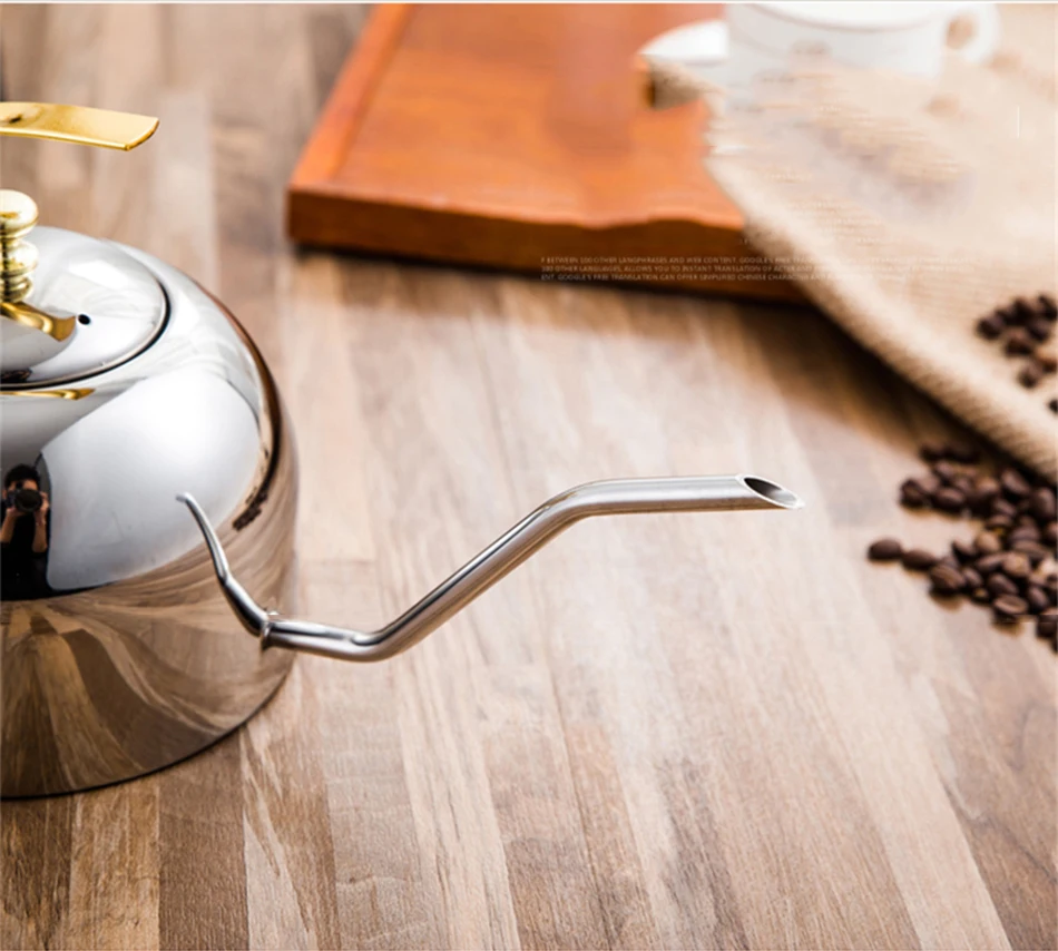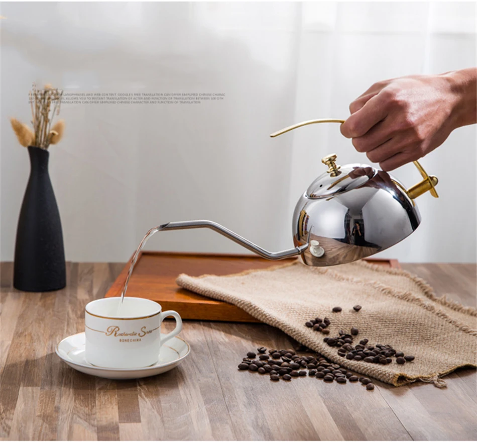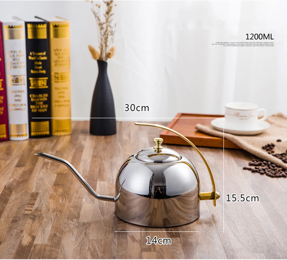 YRP 600ml/1200mlSteel Long Mouth Coffee Pot Drip Coffee Kettle Teapot Hot Water Server Hand Punch Coffee Pot