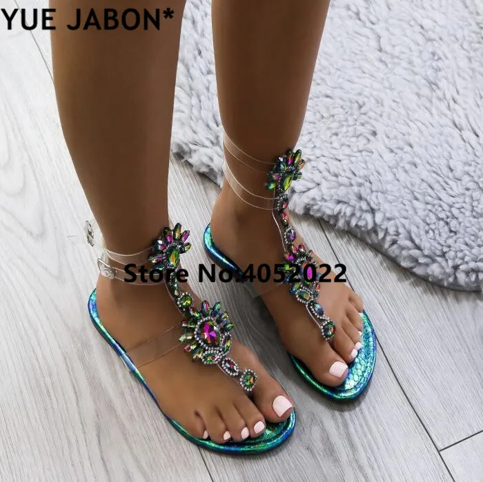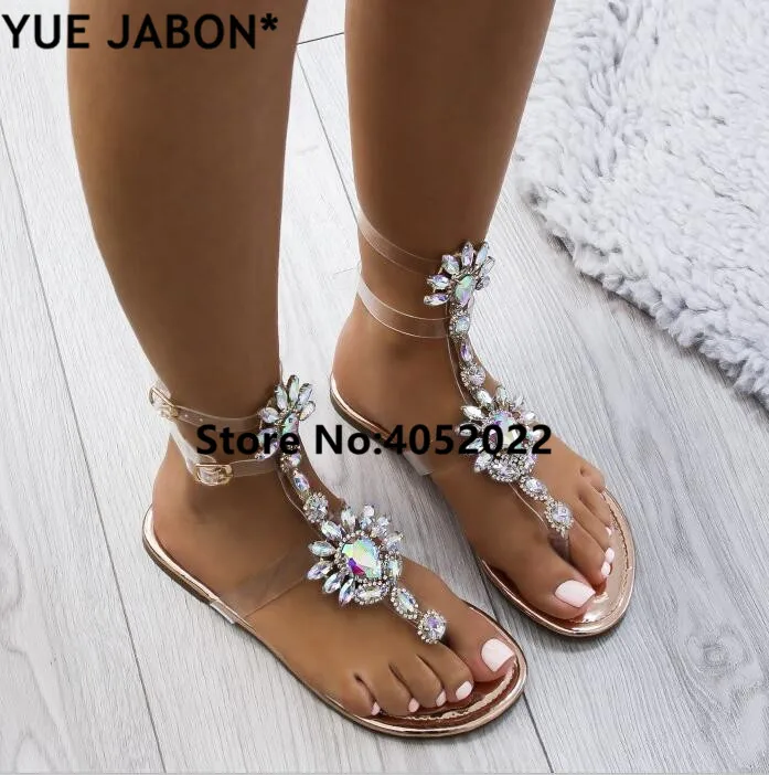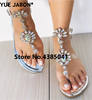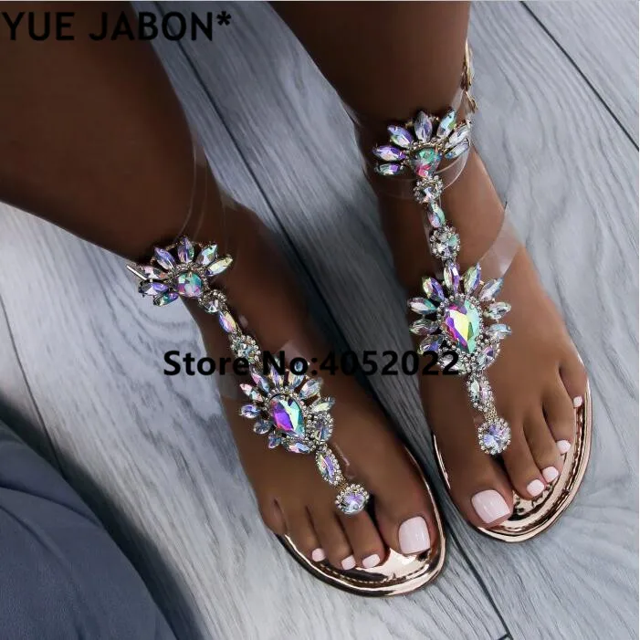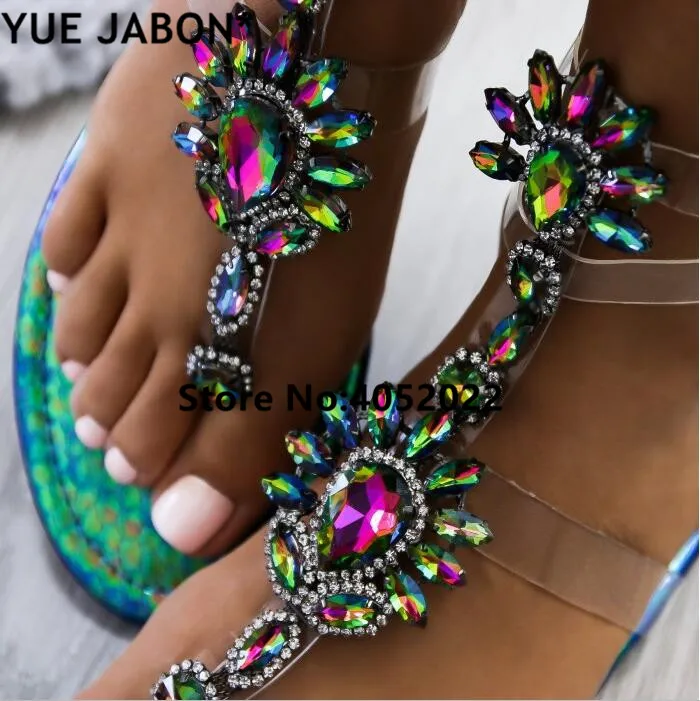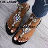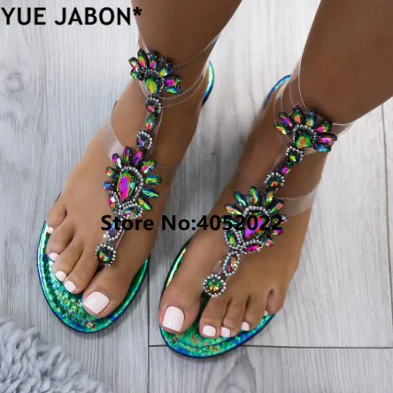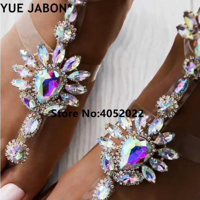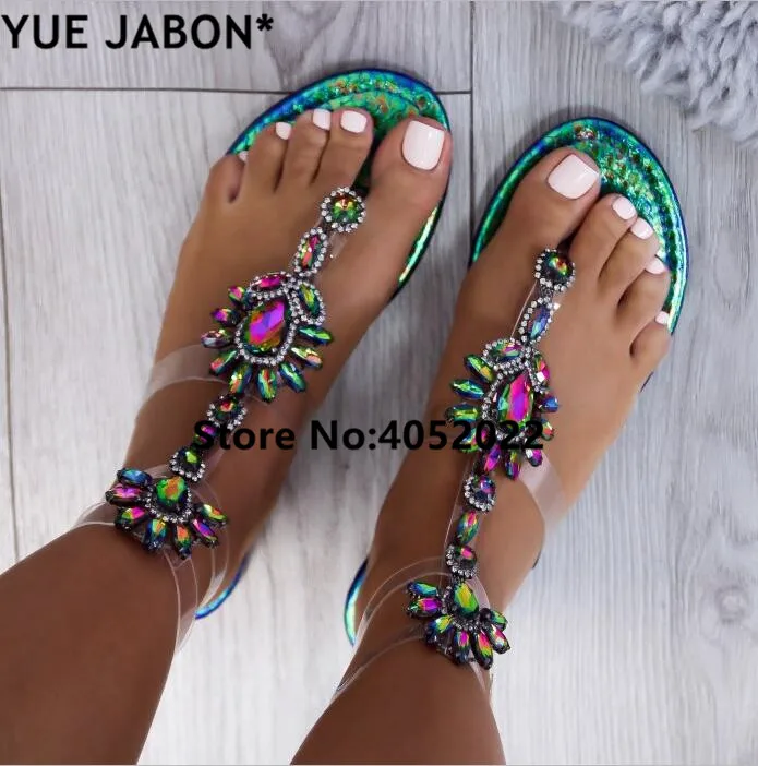 YUE JABON 2018 shoes woman sandals women Rhinestones Chains Flat Sandals Thong Crystal Flip Flops sandals gladiator sandals 43