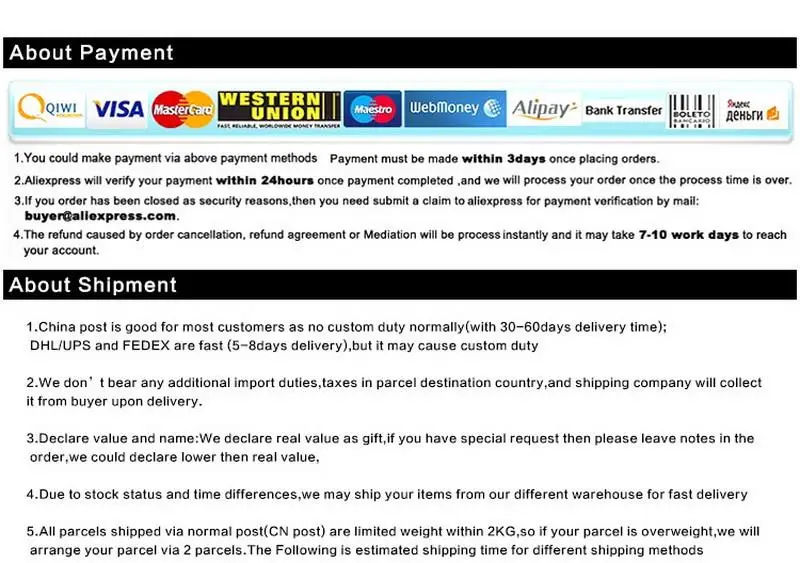 Shipping & Payment