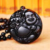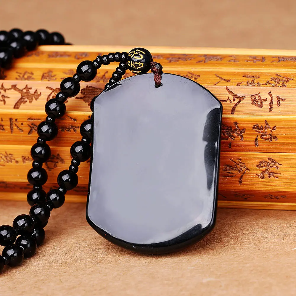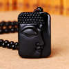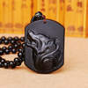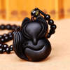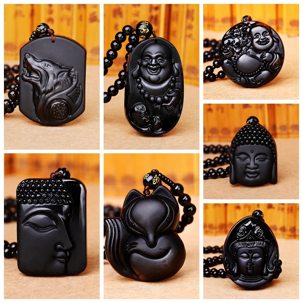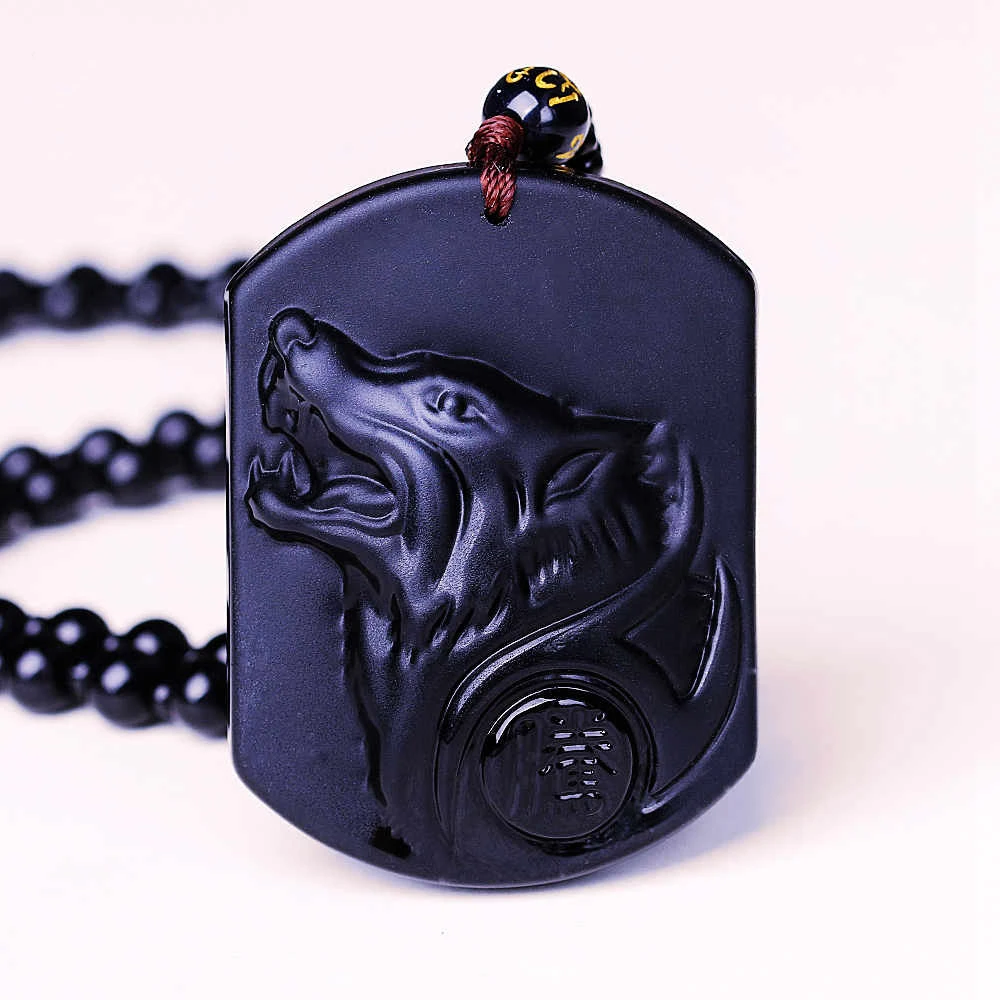 Yumten Natural Obsidian Necklaces Wolf Head Pendant Black Beaded Chain Women Party Accessories Male Classic Ornaments Animal Fox