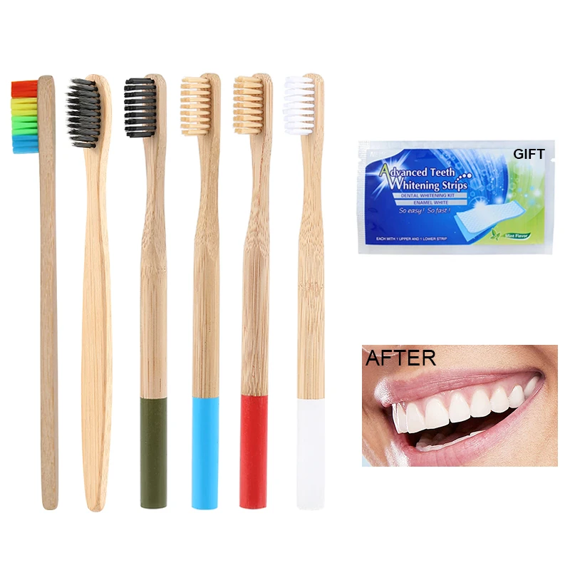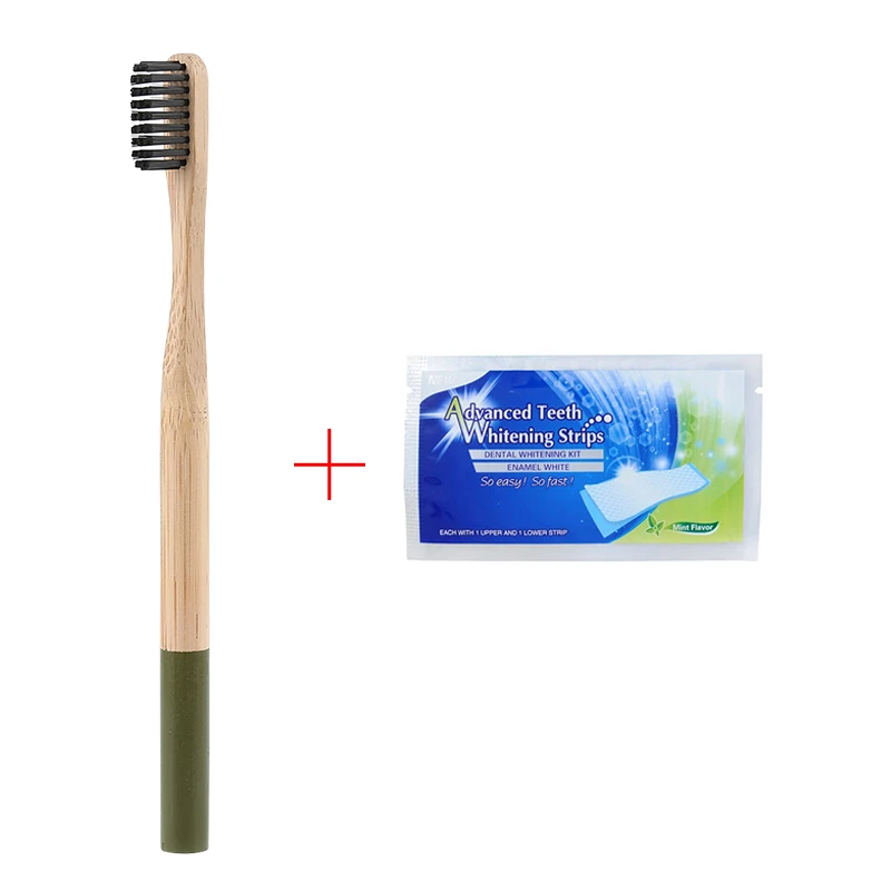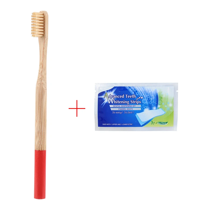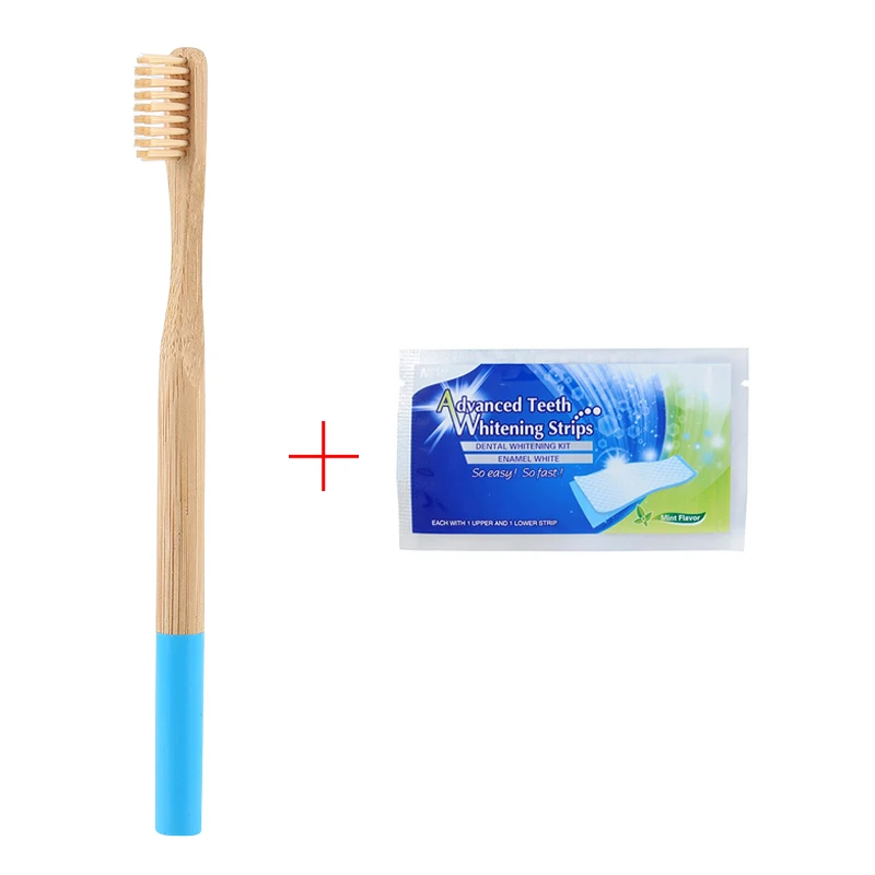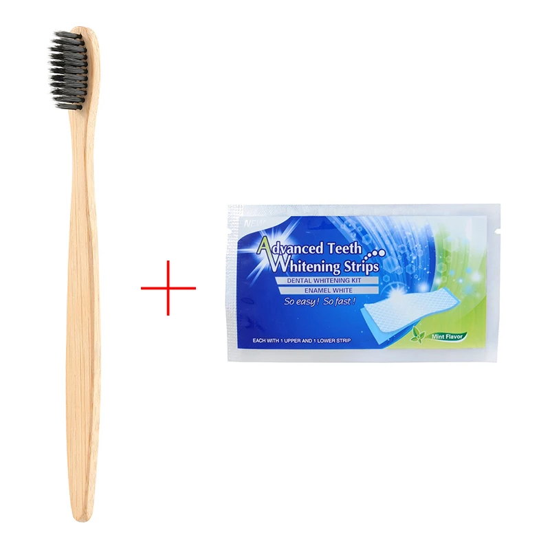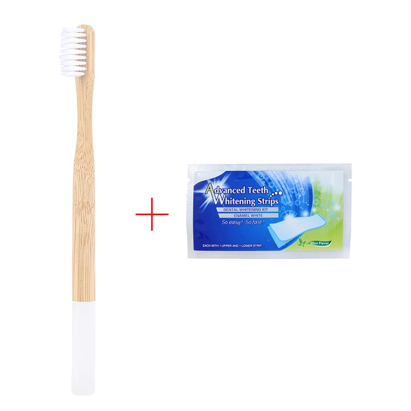 Y&W&F 1pc Eco-friendly Wood Bamboo Toothbrush Soft Bamboo Fibre Wooden Handle Free Add Teeth 1pc Whitening Strip
