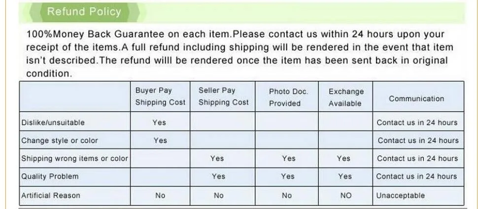 • If you received the wrong item you can request a refund or a reshipment.