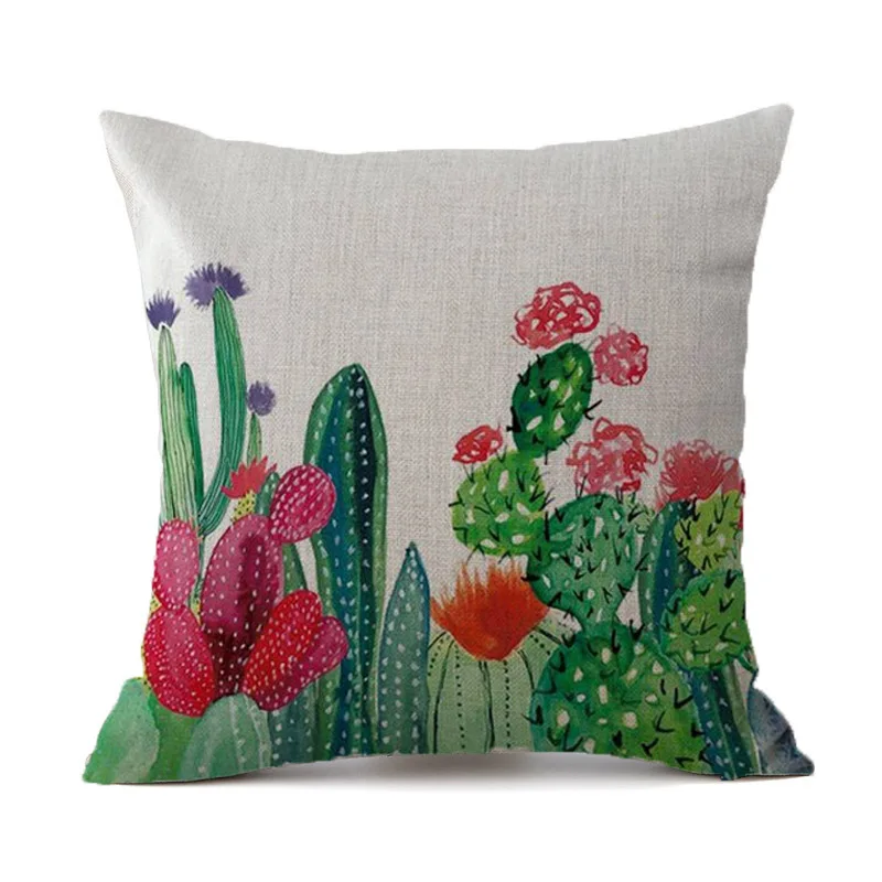 YWZN Tropical Plants Cactus Pillow Case Linen Decorative Pillowcases Tropical Cactus Throw Pillow Case kussensloop almohada