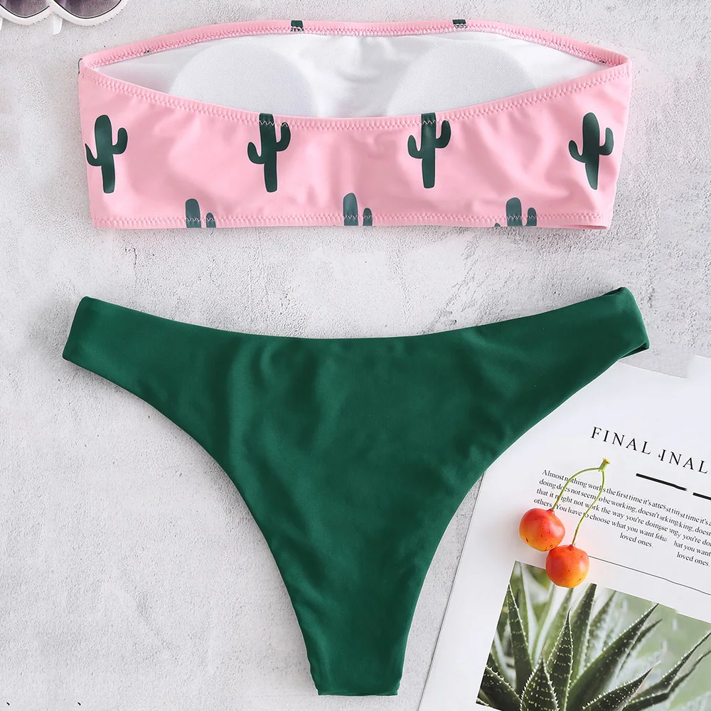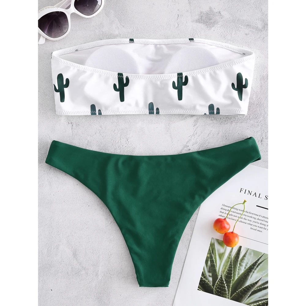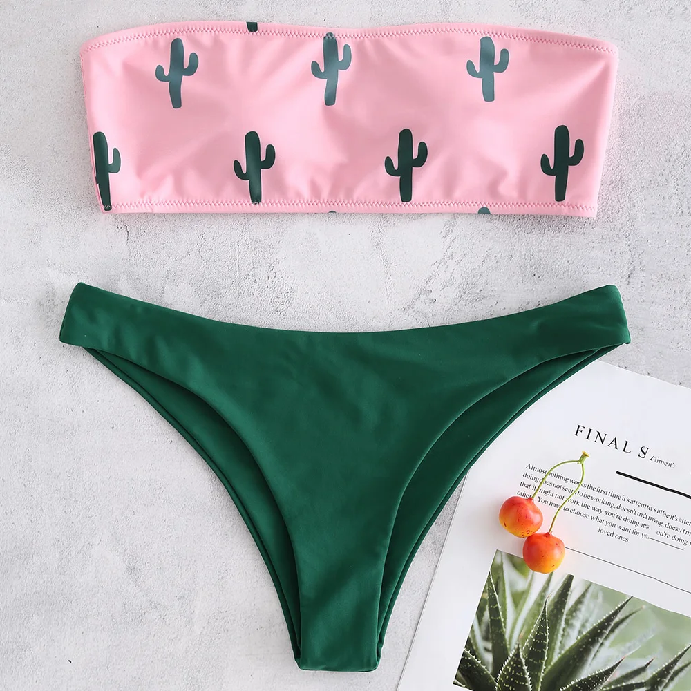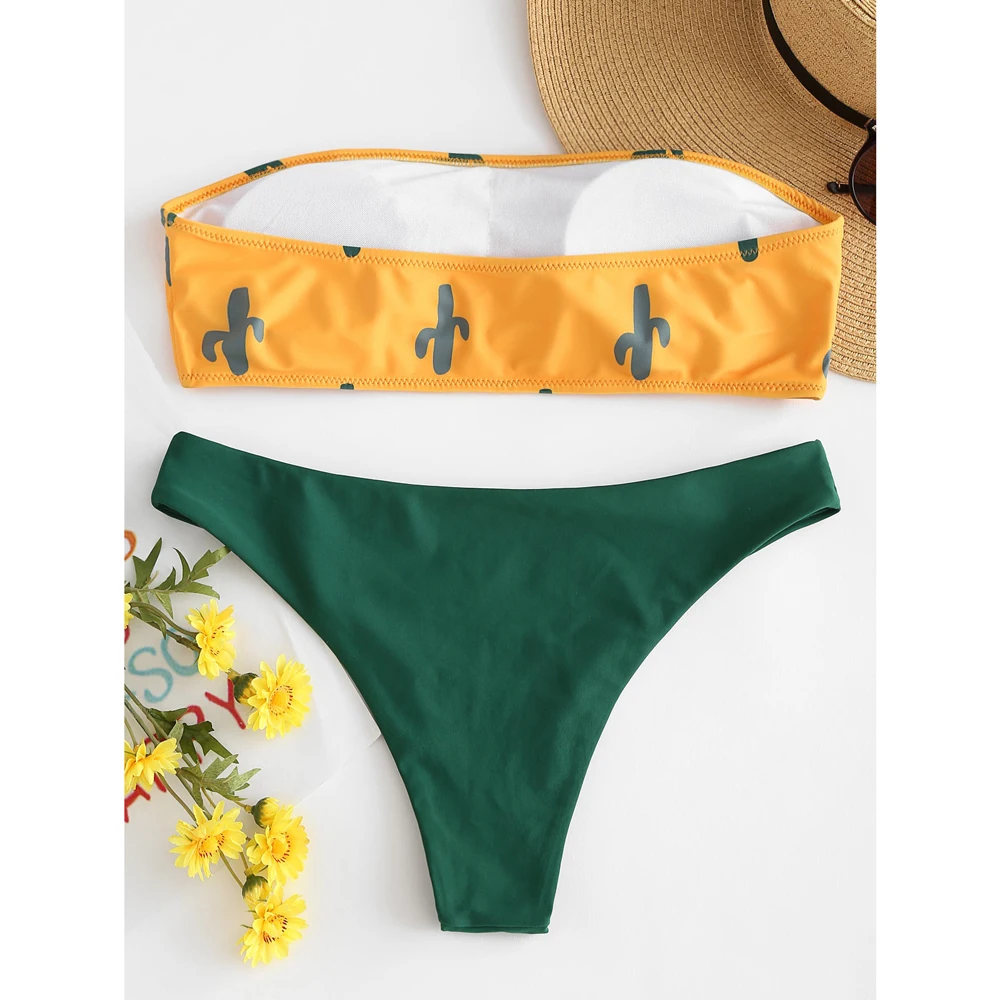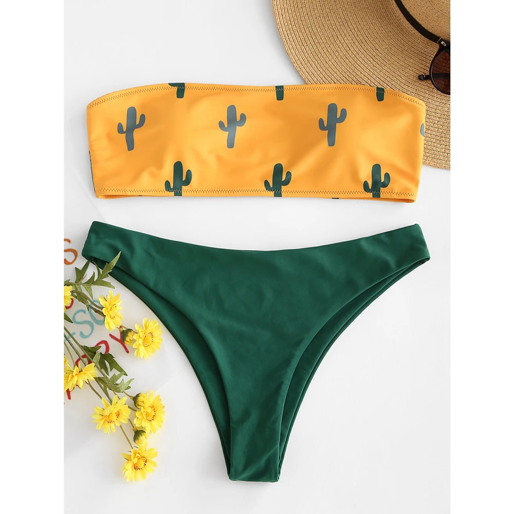 ZAFUL Cactus Print Tube Bikini Set Women Bandeau Bikini Sexy Swimwear Beach Bathing Suit Swimsuit Biquinis Female Beachwear