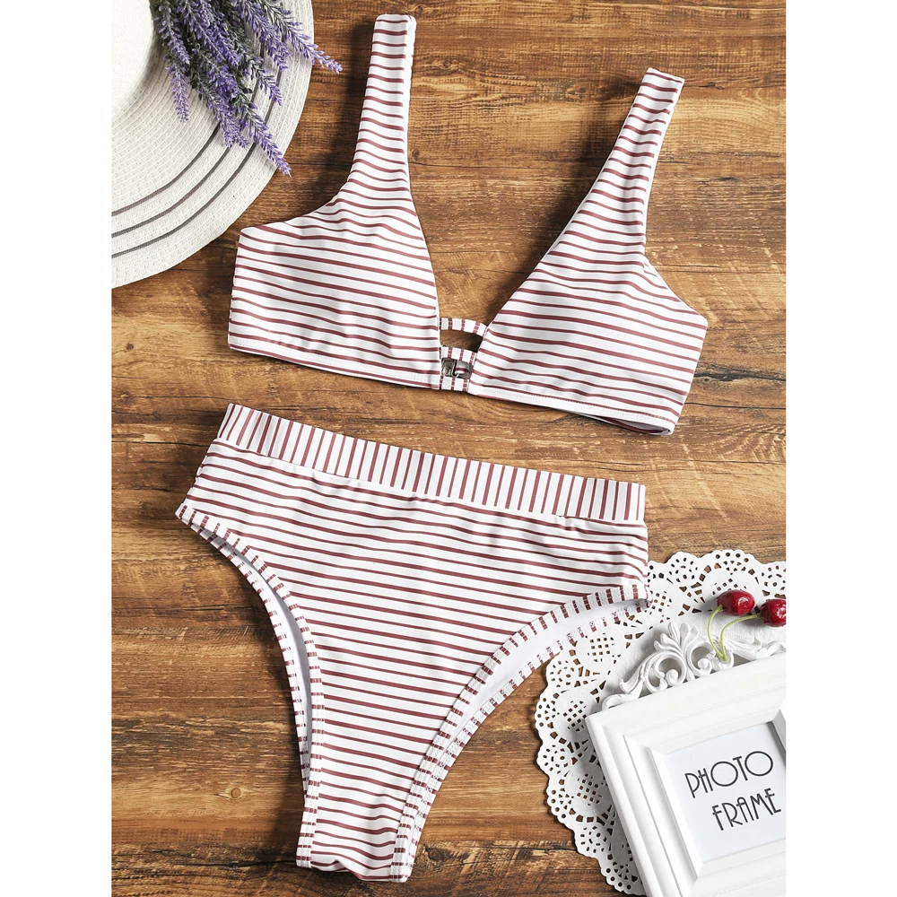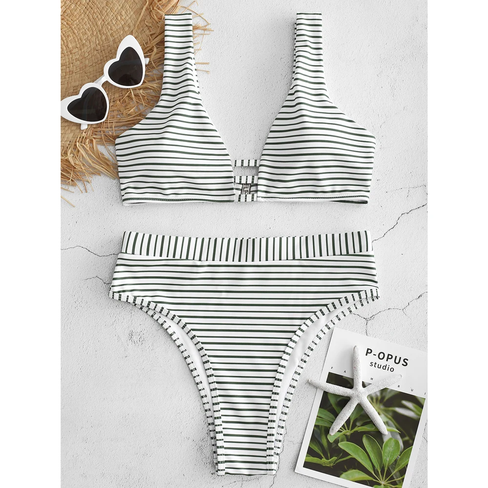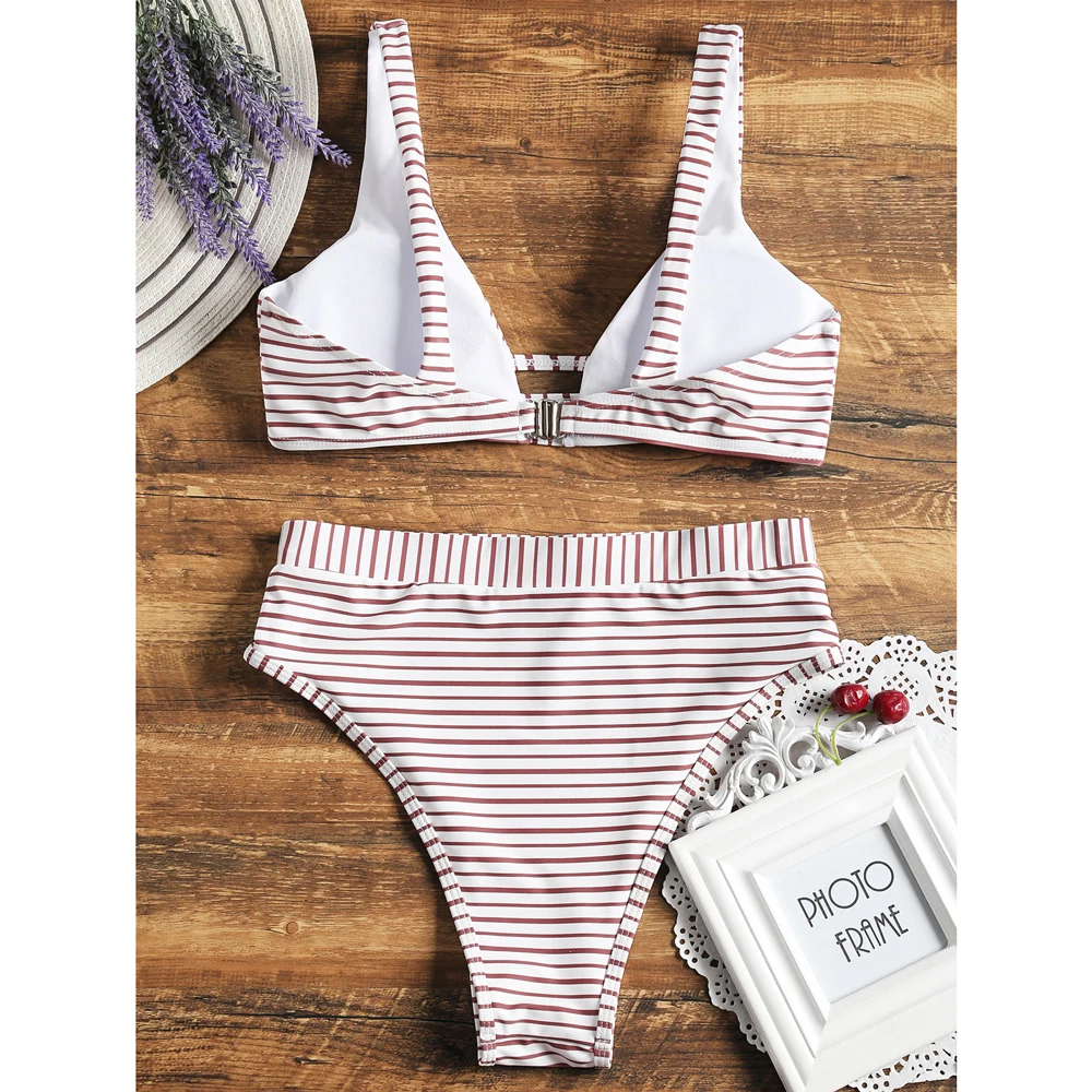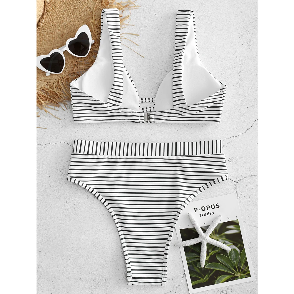 ZAFUL High Waist Swimsuit Sexy Bikinis Women Swimwear Striped High Cut Bikini Set Maillot De Bain Femme Bathing Suit Biquinis