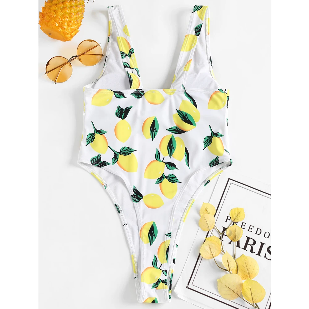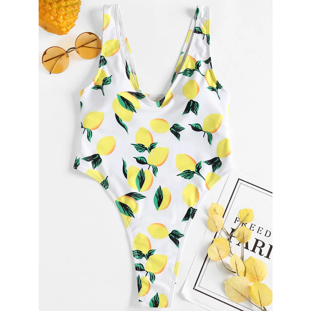 ZAFUL New Lemon Print High Cut One Piece Swimsuit Sexy Cut Women Bathing Suit Swimwear Summer Beach Female Monokinis Bodysuits