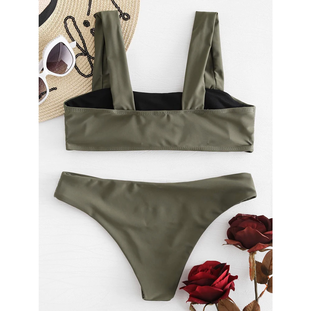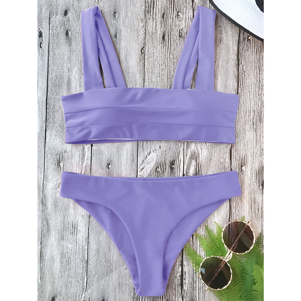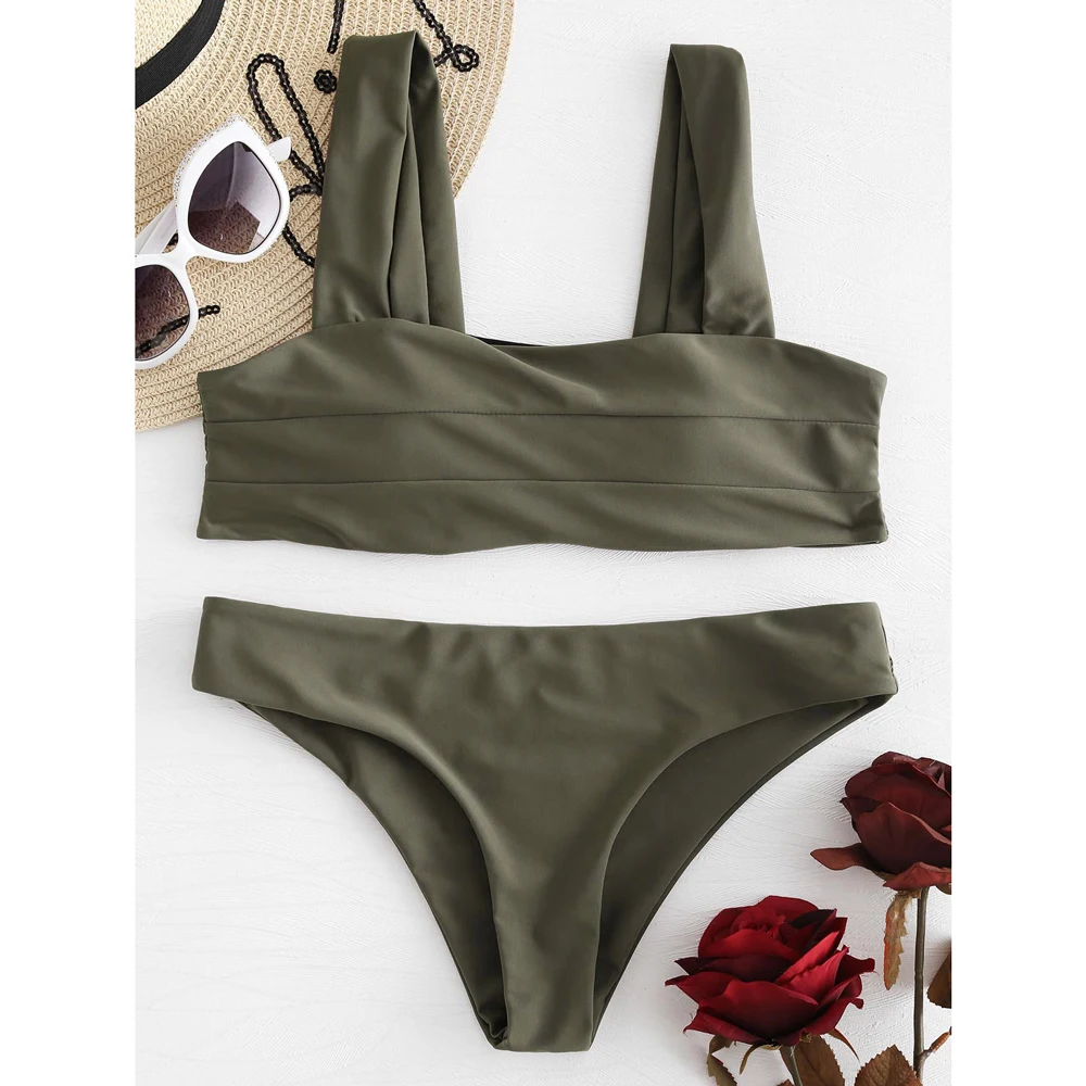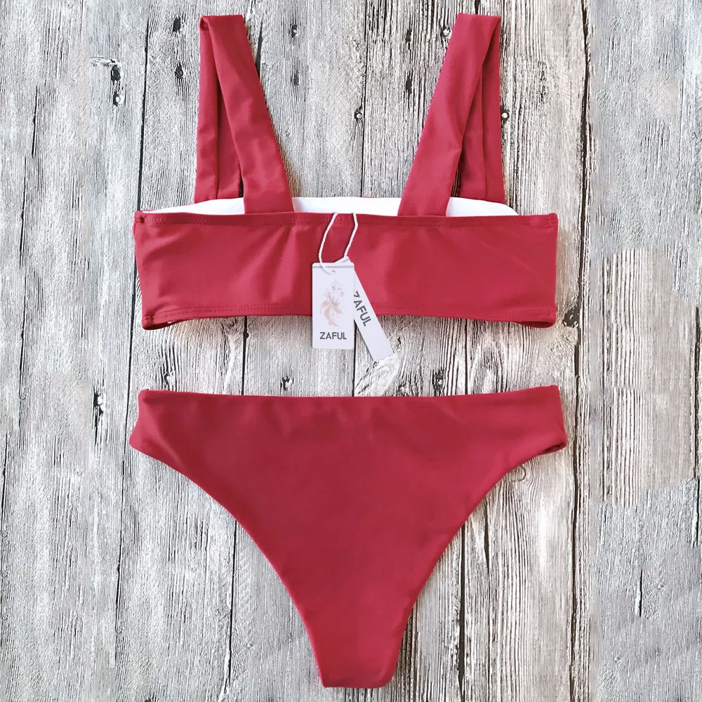 ZAFUL Wide Straps Padded Bandeau Women Bikini Set Sexy Bathing Suit Biquinis Brazilian Push Up Swimwear Summer Swimsuit Femme