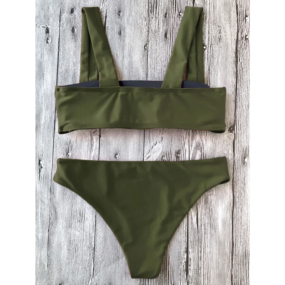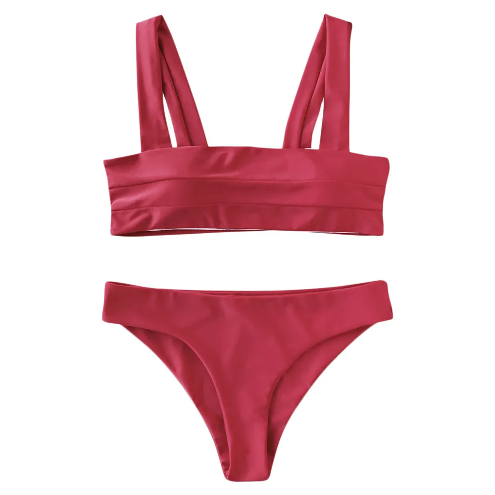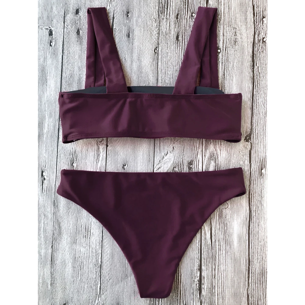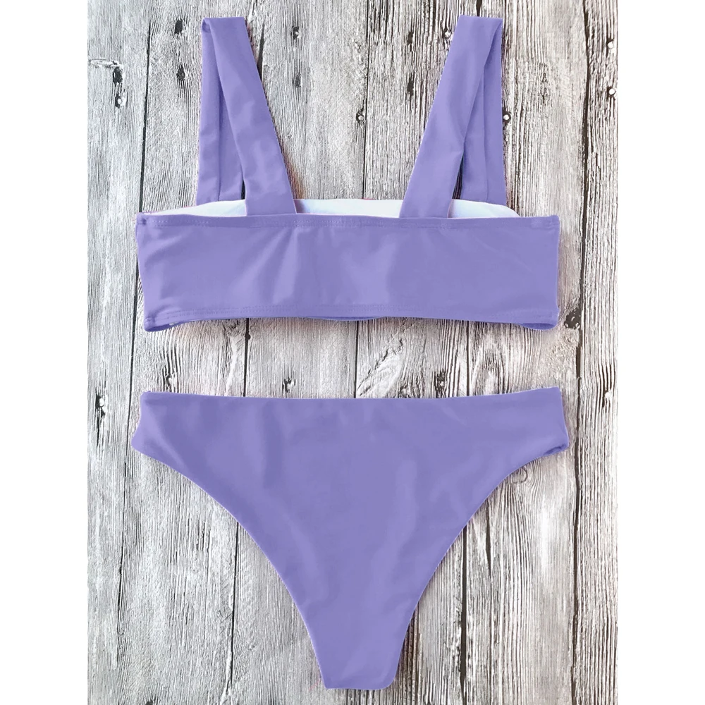 ZAFUL Wide Straps Padded Bandeau Women Bikini Set Sexy Bathing Suit Biquinis Brazilian Push Up Swimwear Summer Swimsuit Femme