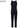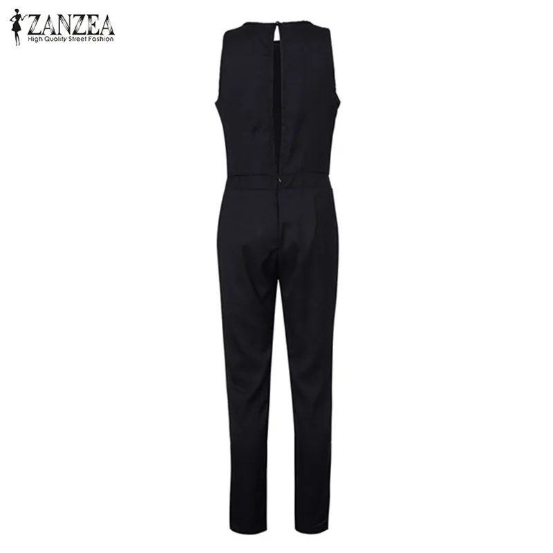 ZANZEA 2018 Summer Rompers Womens Jumpsuit Sexy Ladies Casual Elegant Sleeveless Long Trousers Plus Size Overalls Black Jumpsuit