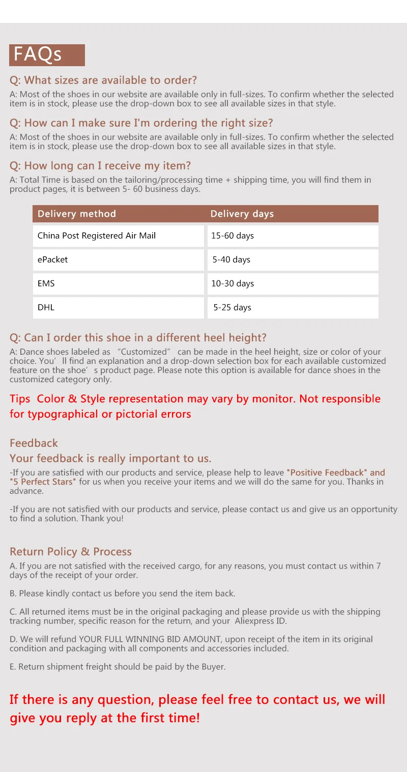 • If you did not receive the product within the guaranteed time( 45 days not including 2-5 day processing) you can request a refund or a reshipment.