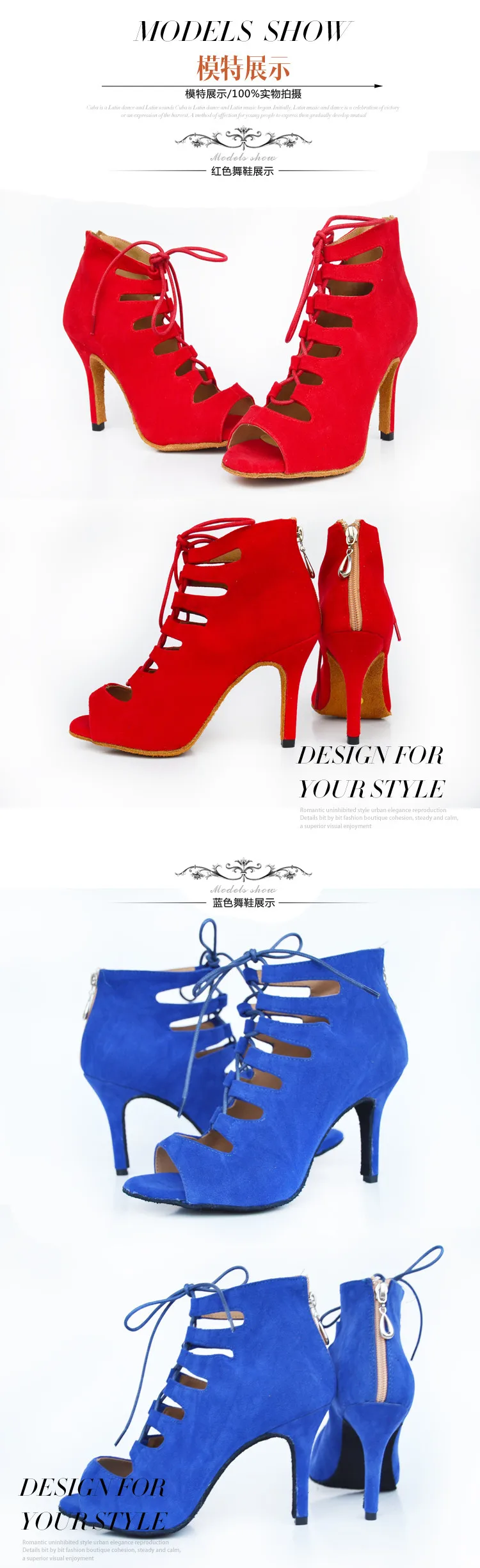 Zapatos de baile latino red black purple blue 8.5cm 6cm 7cm Girls Salsa Ballroom boots Latin Dance Shoes Women L-033