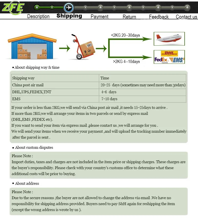 • If you did not receive the product within the guaranteed time( 45 days not including 2-5 day processing) you can request a refund or a reshipment.