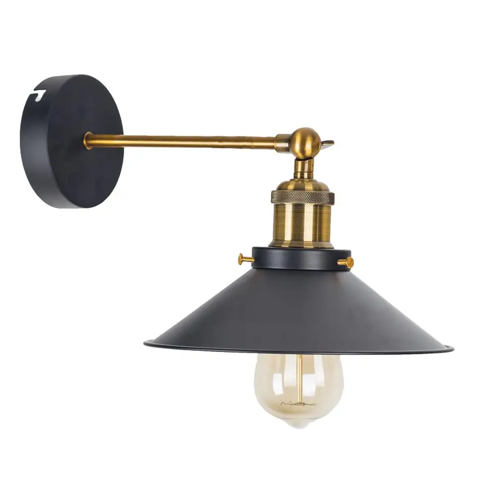 ZhaoKe Black Color Loft Industrial Wall Lamps Vintage Bedside Wall Light Metal Lampshade E27 Edison Bulbs 110V/220V