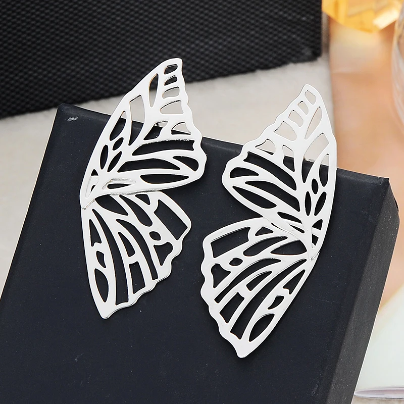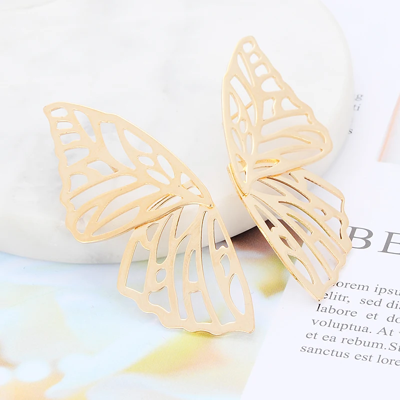 ZHINI Trendy Large Hollow Butterfly Drop Dangle Earring for Women Metal Geometric Pendant Earrings Statement Jewelry Oorbellen