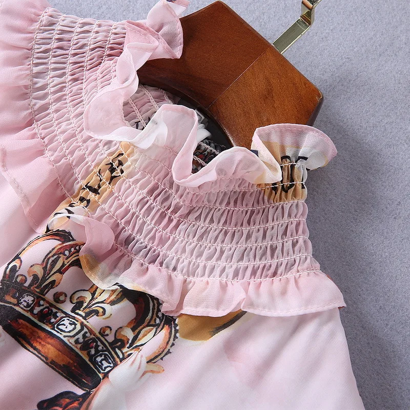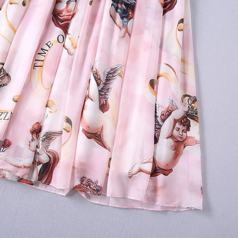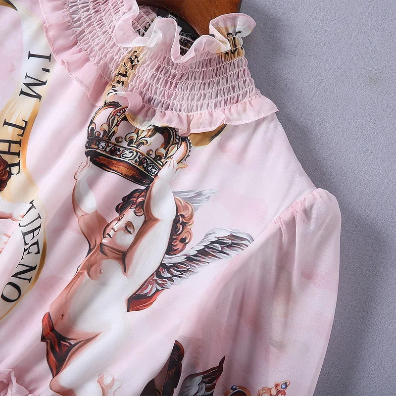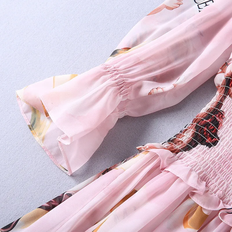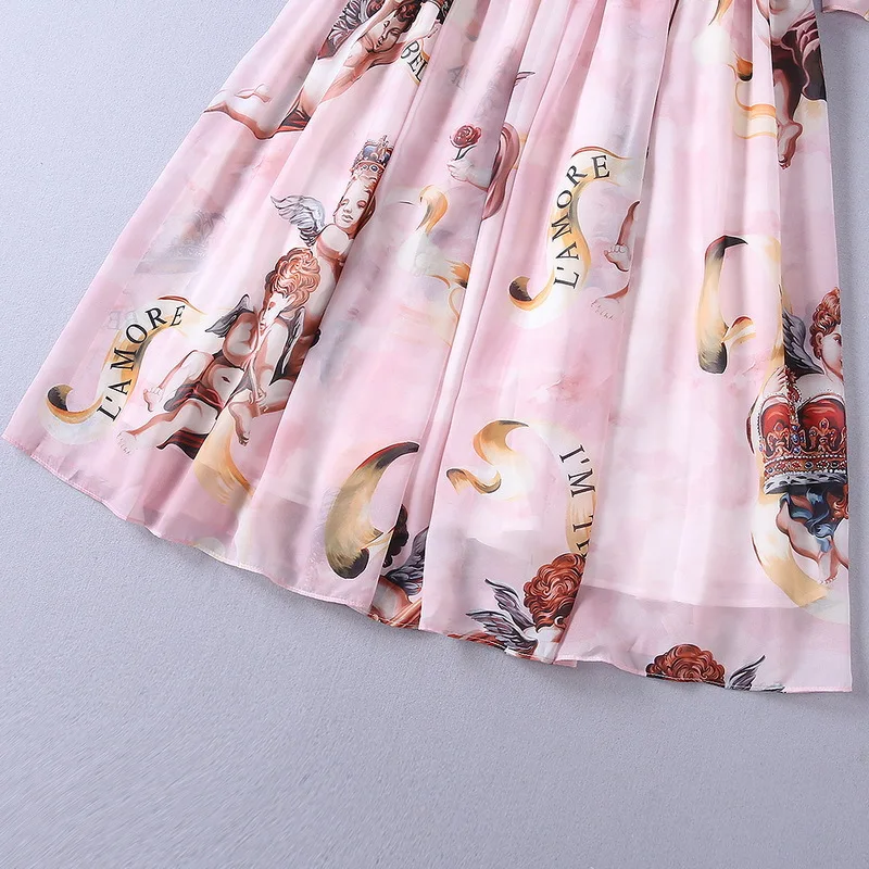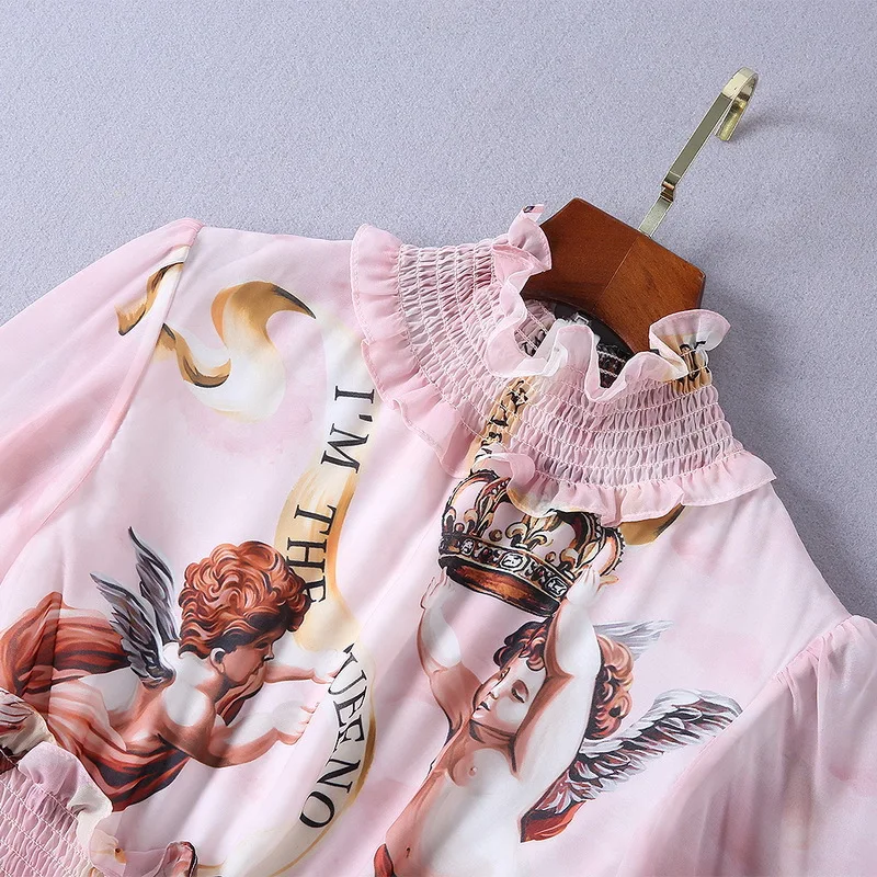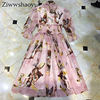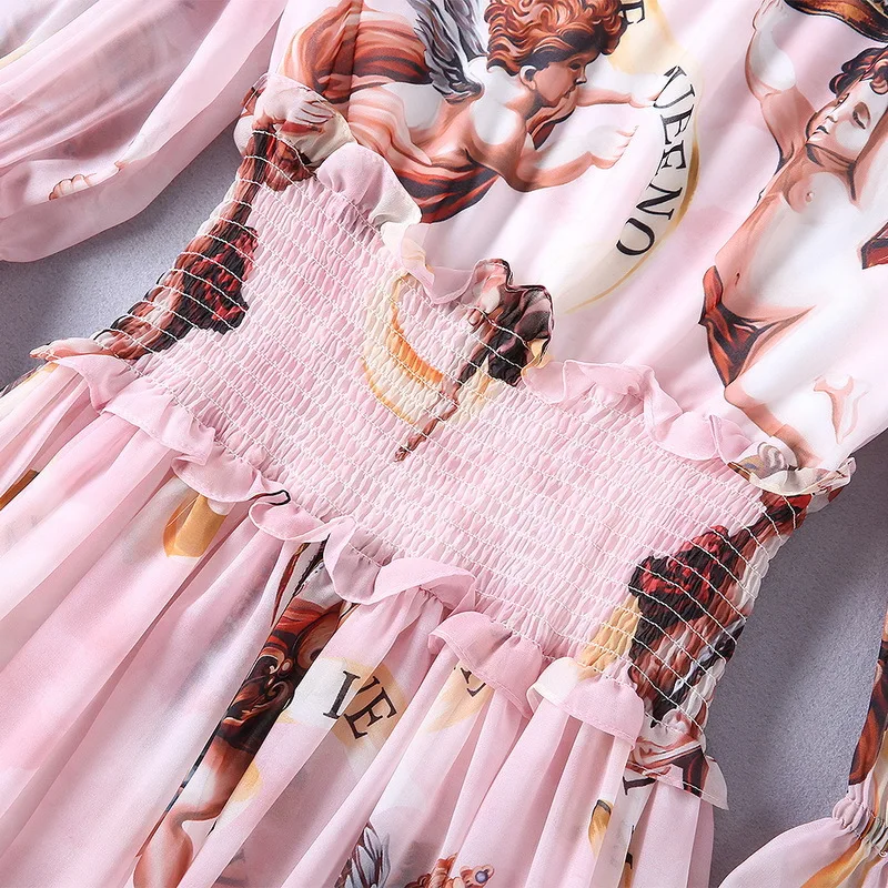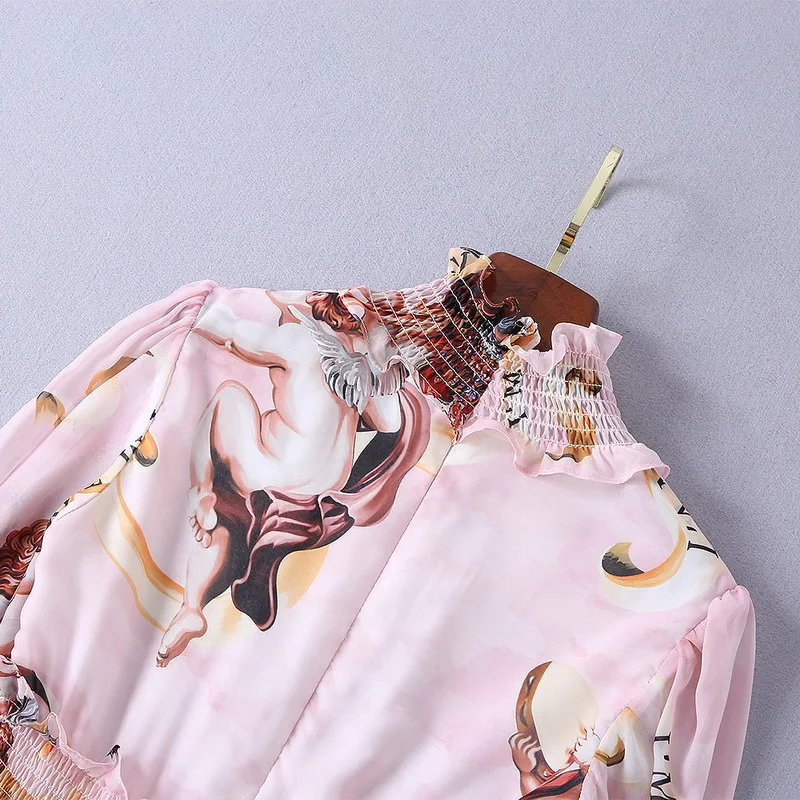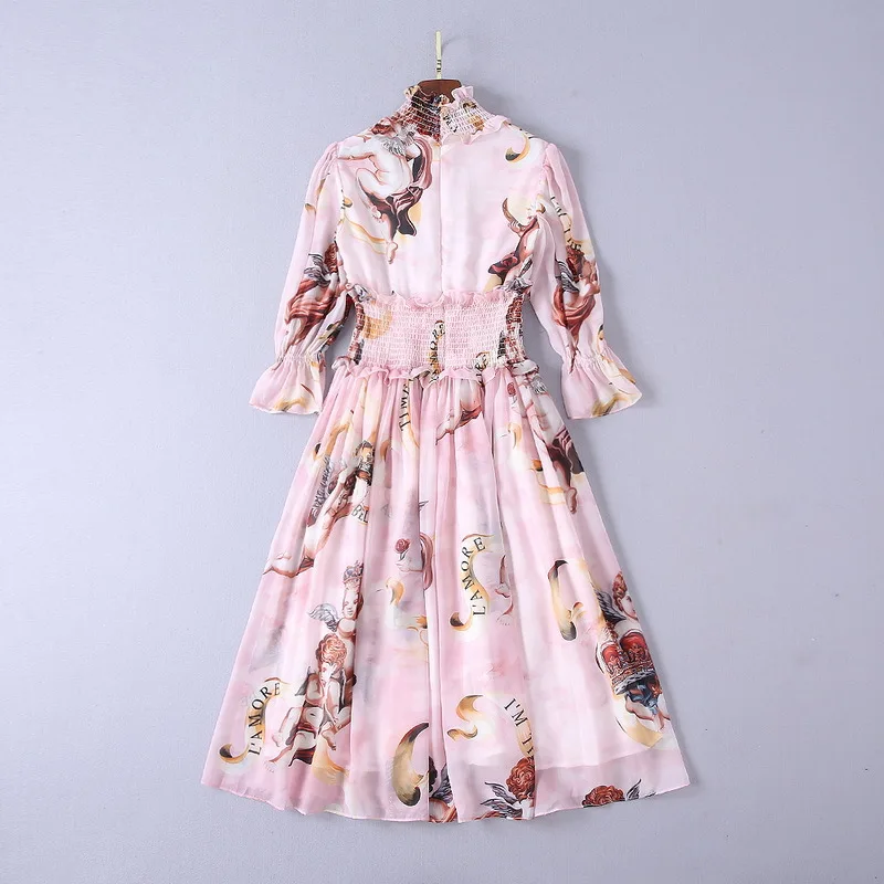 Ziwwshaoyu Europe and the United States 2019 spring and summer new dress Bohemian Turtleneck Flare Sleeve Angel print dress