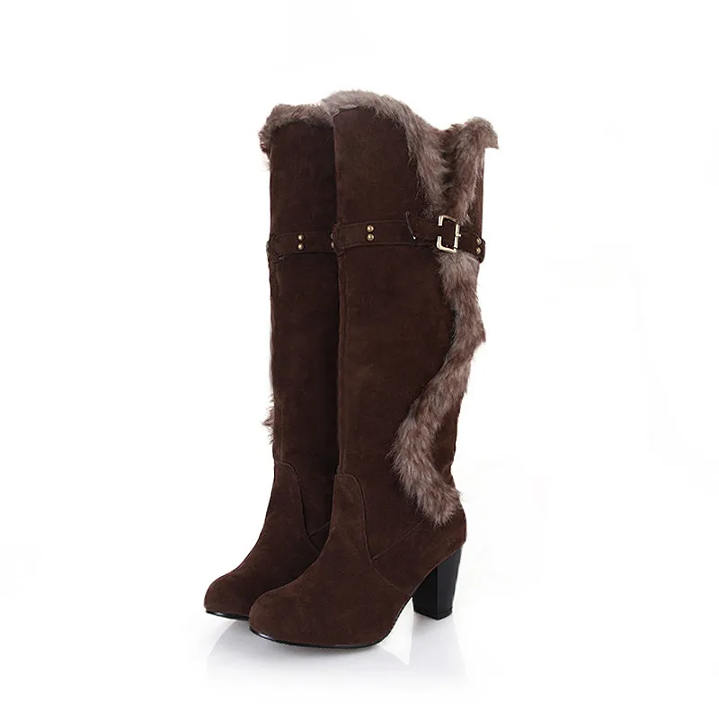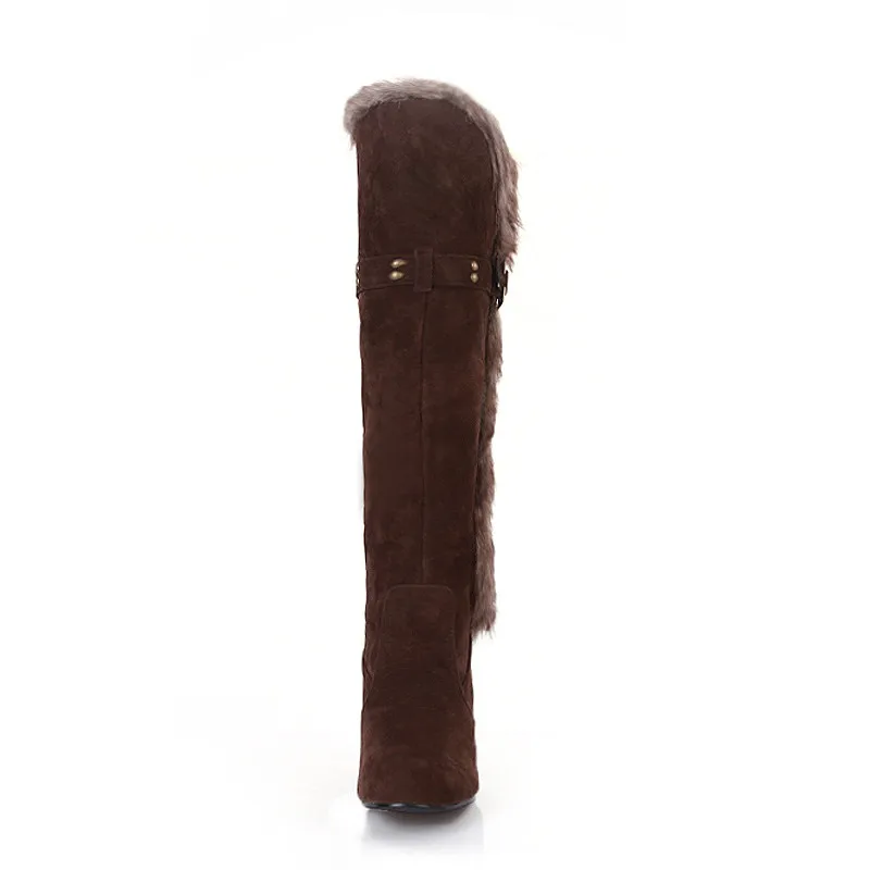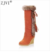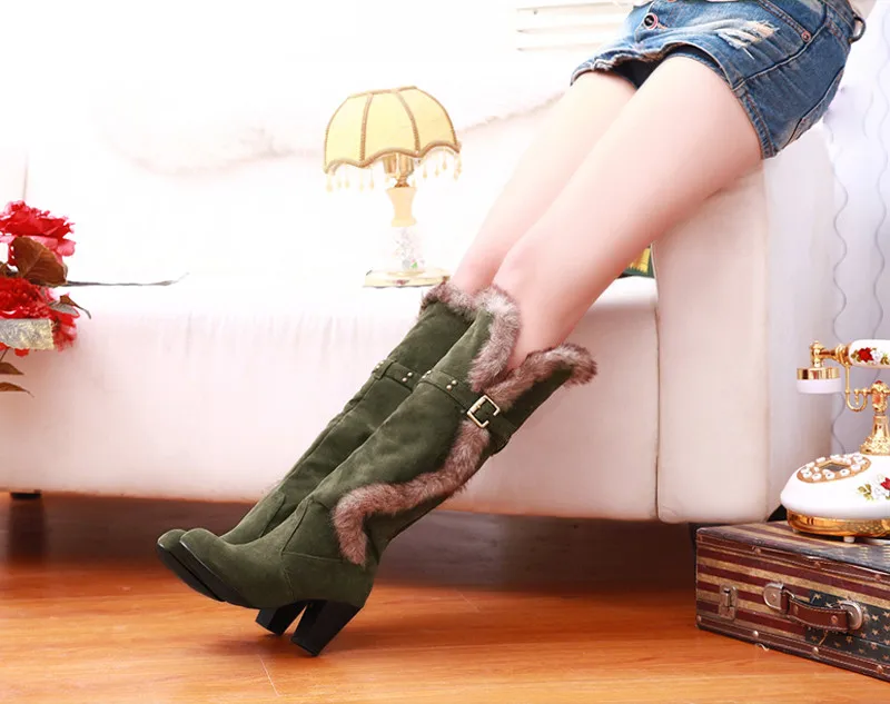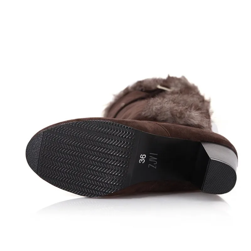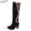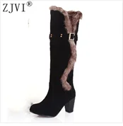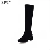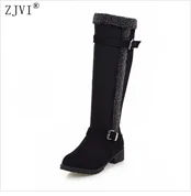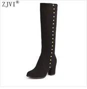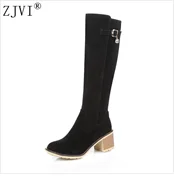 ZJVI Fashion womens knee high boots nubuck winter Women thigh high snow boots Woman fashion 2018 ladies square high heels shoes