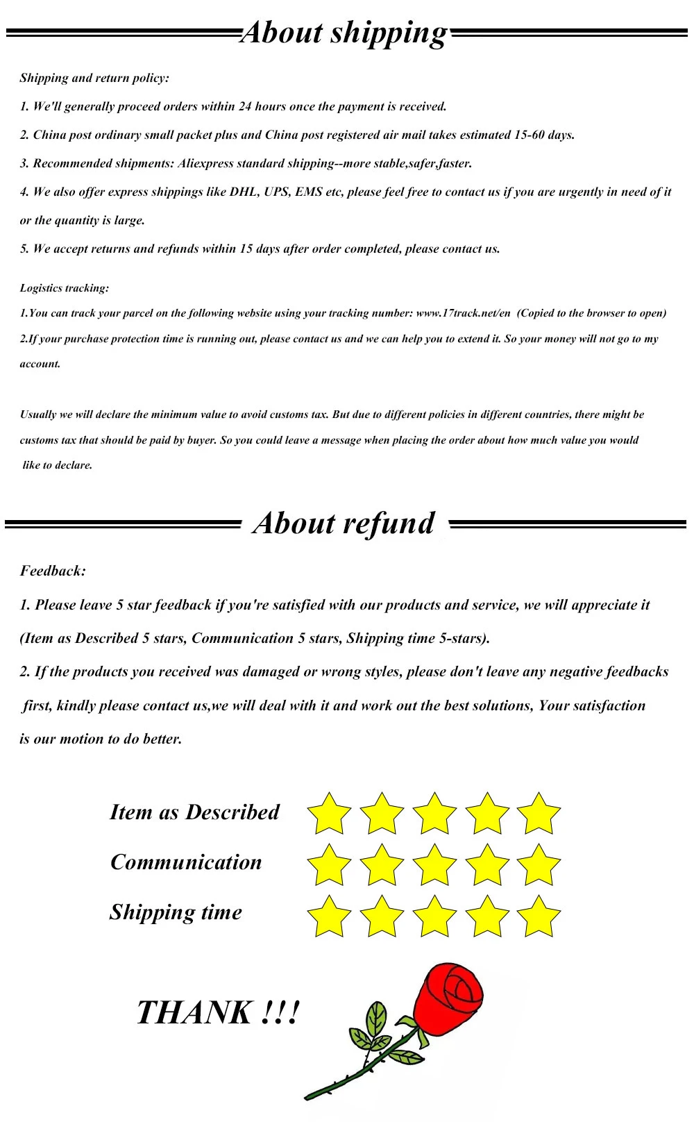 *You can submit refund requests within 15 days after the guaranteed period for delivery (45 days) has expired. You can do it by sending a message on Contact Us page