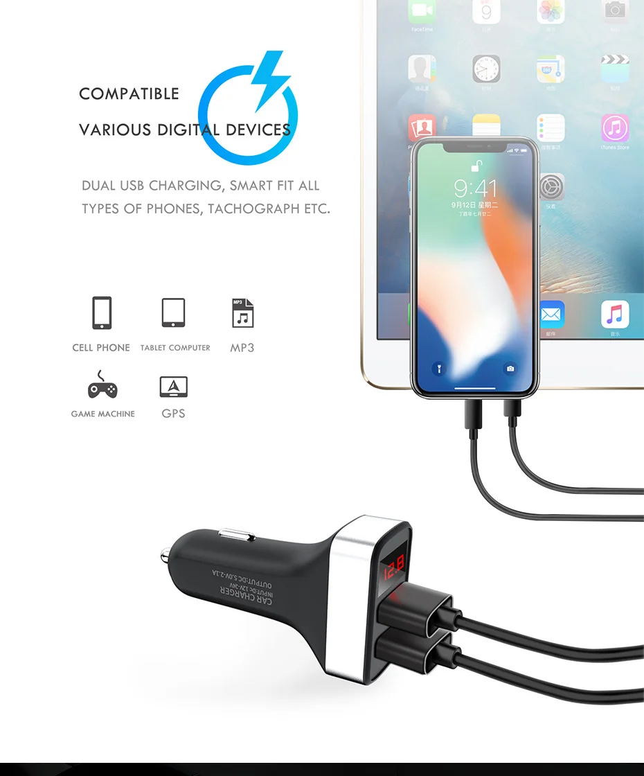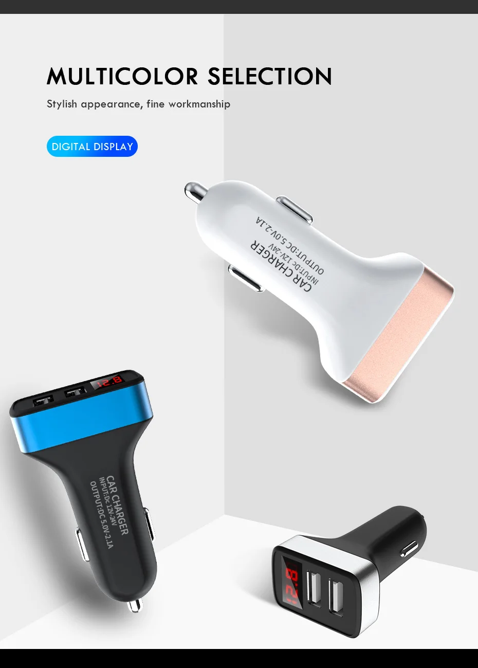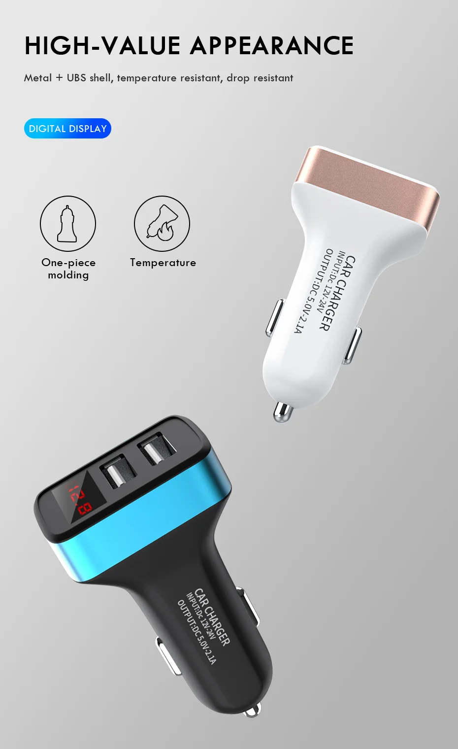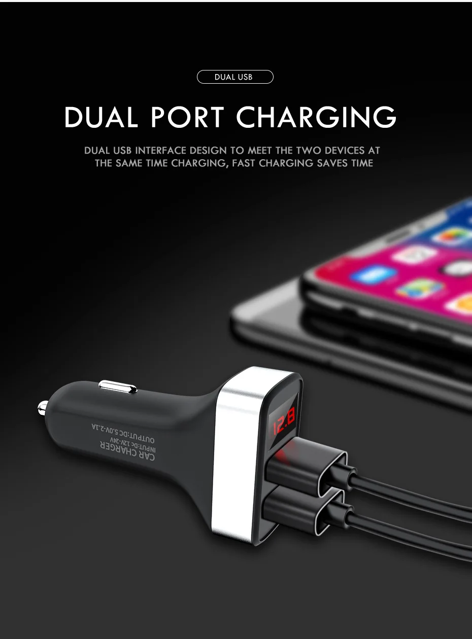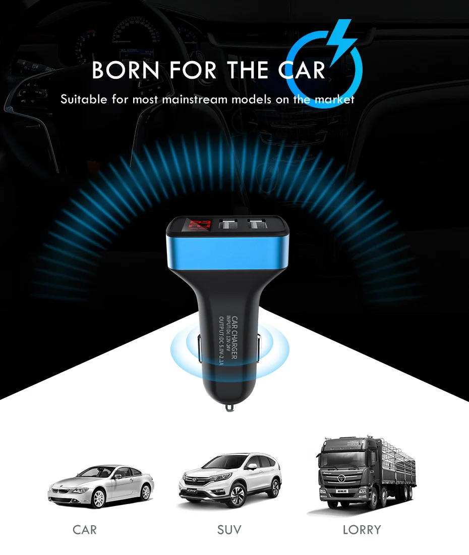 ZNP Car Charger Digital Display Dual Port USB Adapter 2.1A Car Charger Double USB for iPhone Xiaomi Phone Charging For Samsung