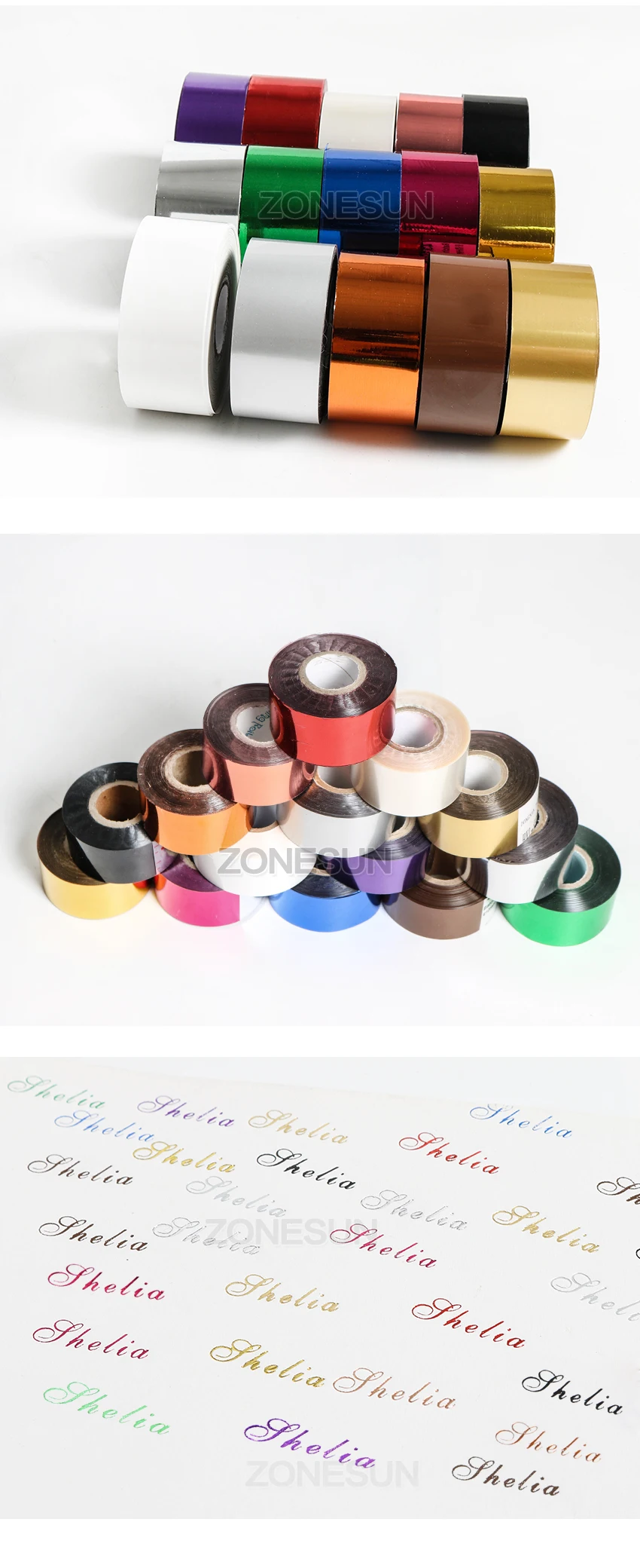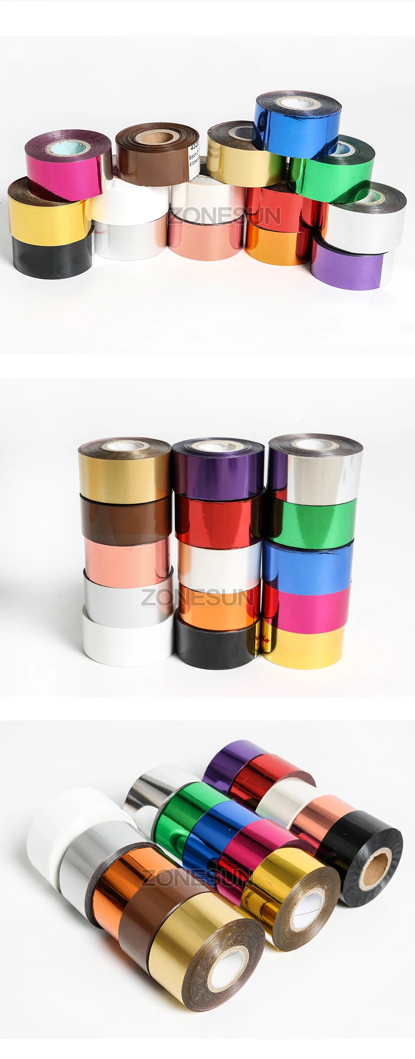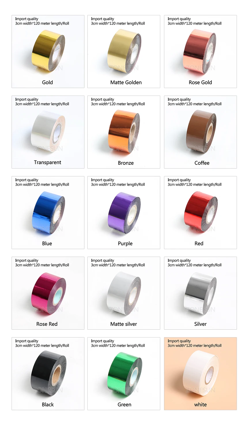 ZONESUN 3cm Gold Silver Red Rose Hot Stamping Foil Paper Transparent Color width/Roll Customized Size DTY Brass Mold Foil 120m