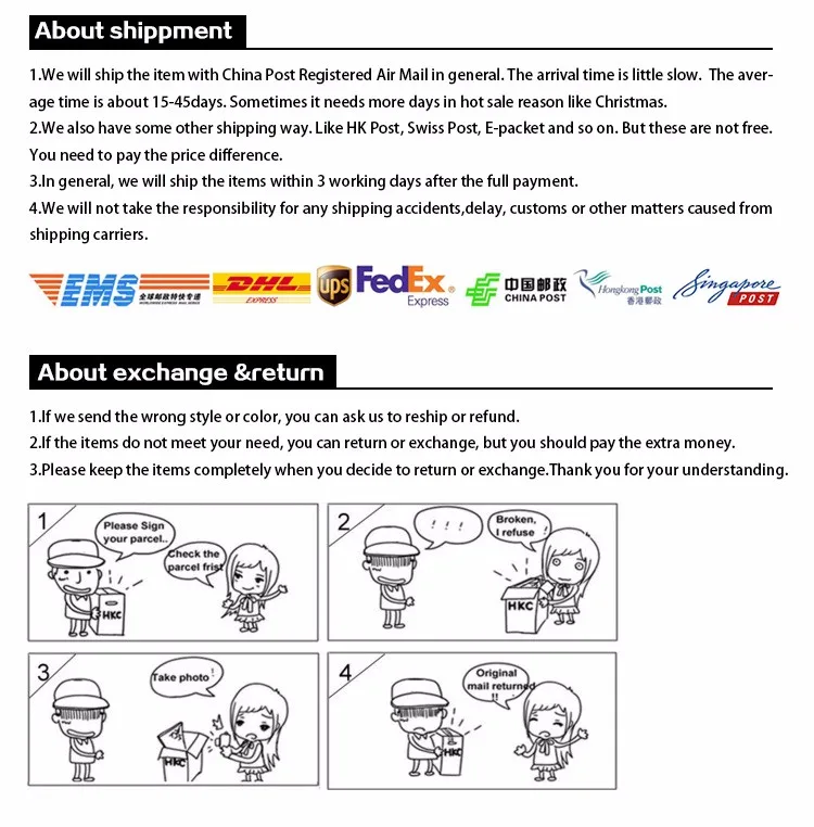 • If you did not receive the product within the guaranteed time( 45 days not including 2-5 day processing) you can request a refund or a reshipment.
