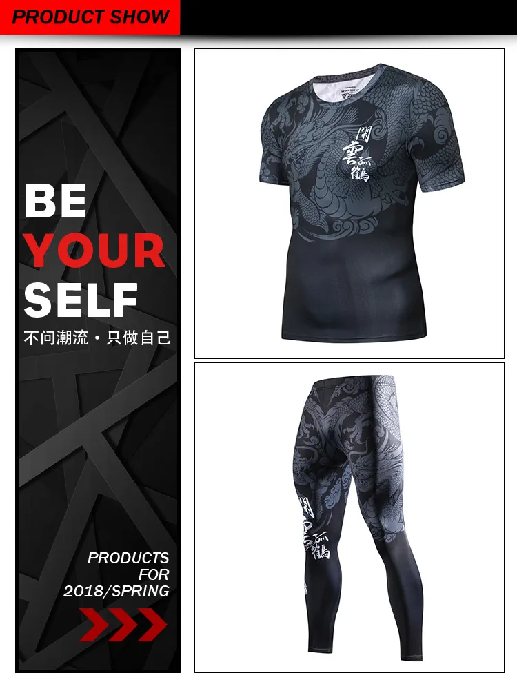 ZRCE Rashgard Short Sleeves Fitness Tights Tracksuit Set 2 Piece Set Compression Set men’s sportswear