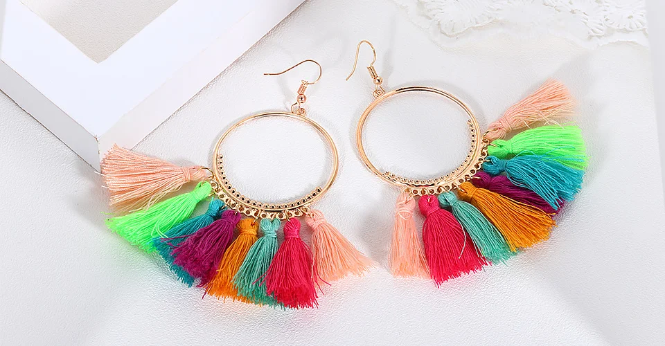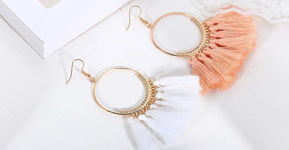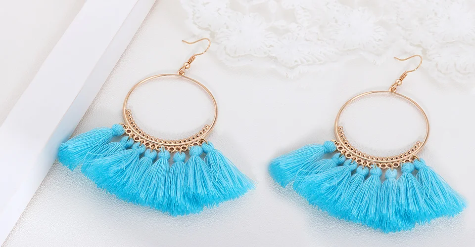 ZWC Creative Fashion Fan Shaped Tassel Earrings Jewelry for Women and Girls Wedding Party Personality Vintage Drop Earrings Gift