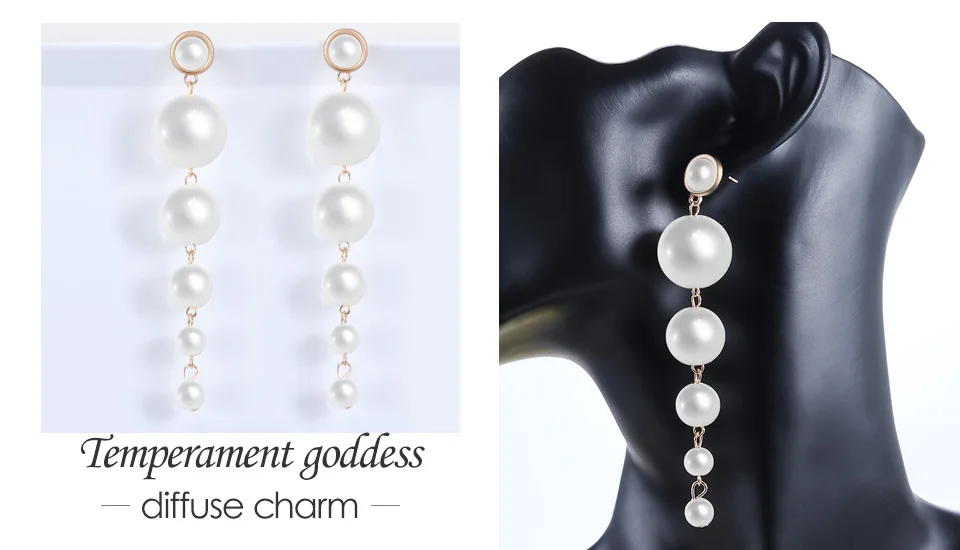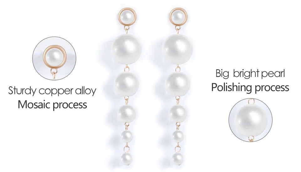 ZWC Fashion Elegant Simulated Big Pearl Drop Earrings Jewelry for Women Girl Wedding Party Charm Long Earring Gift