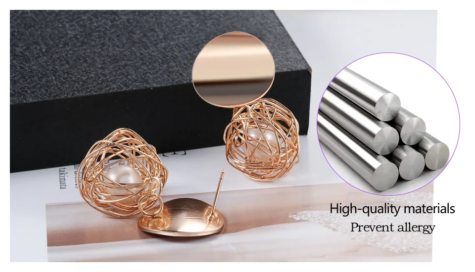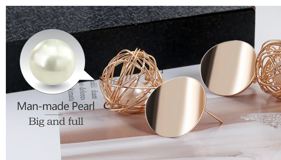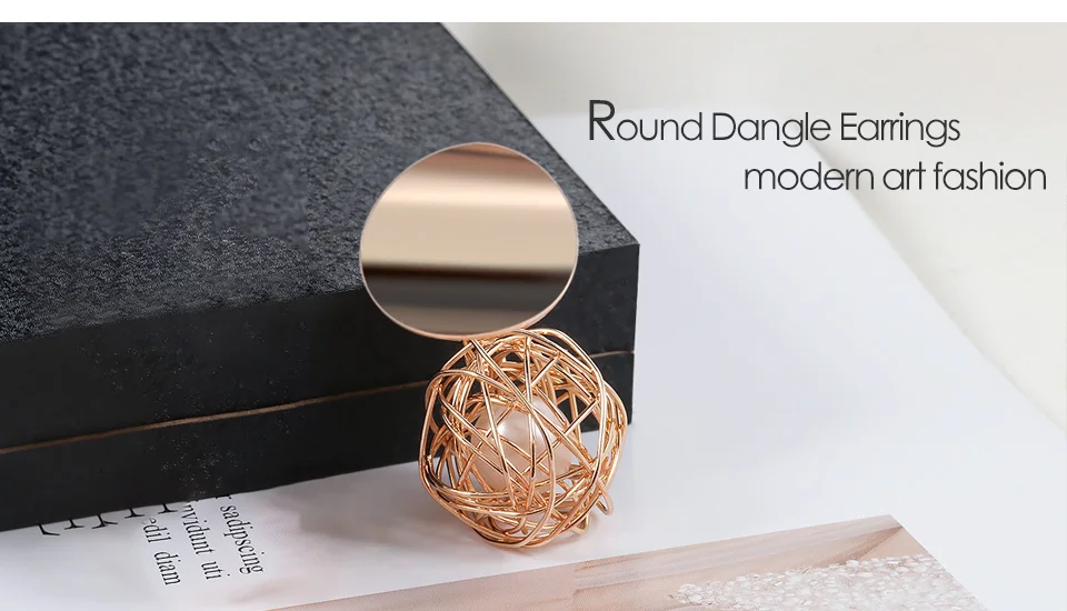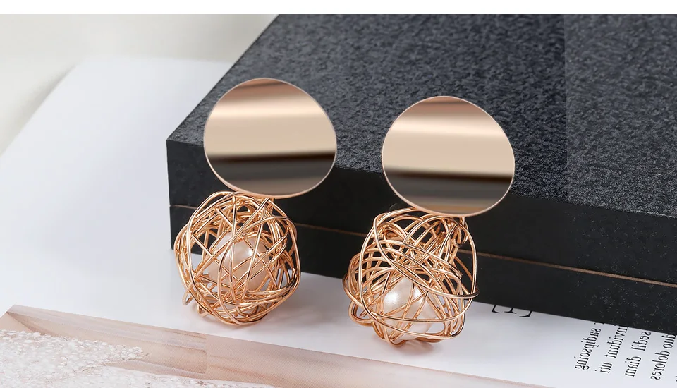 ZWC Fashion Vintage Metallic Geometric Earrings for Women and Girls Party Charm Weave Balls Imitation Pearl Drop Earring Jewelry