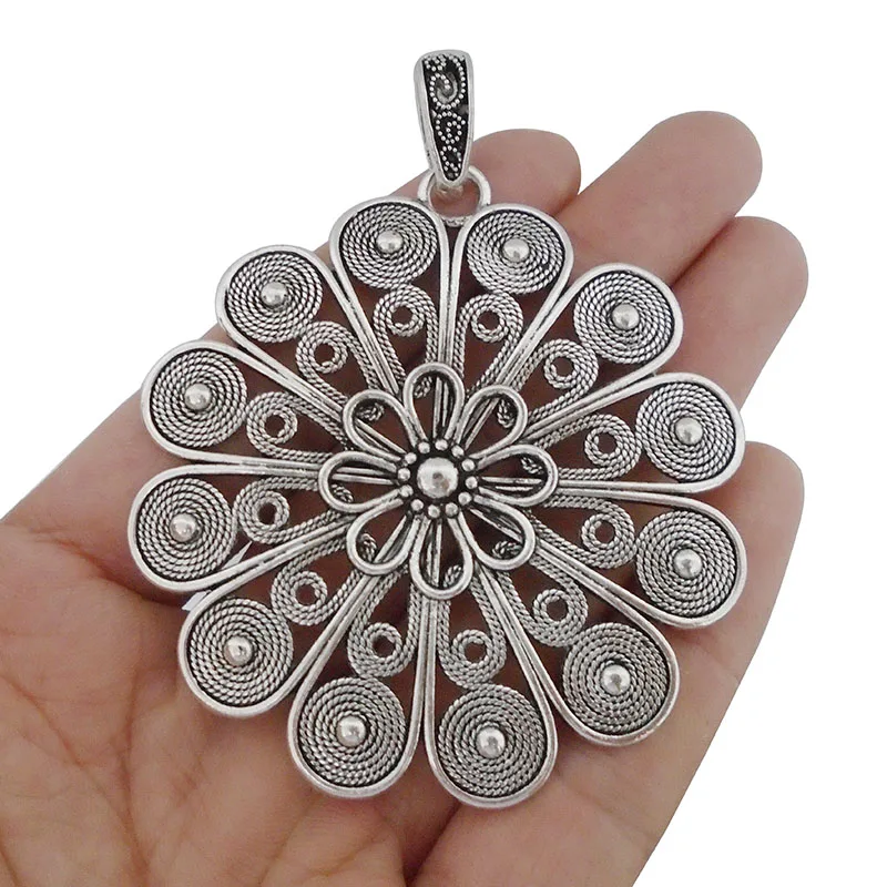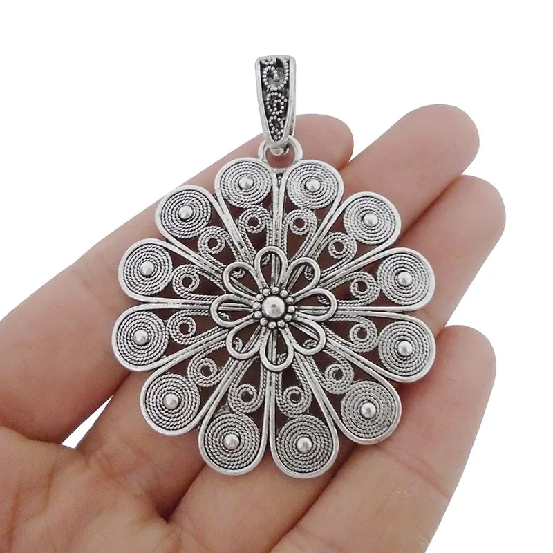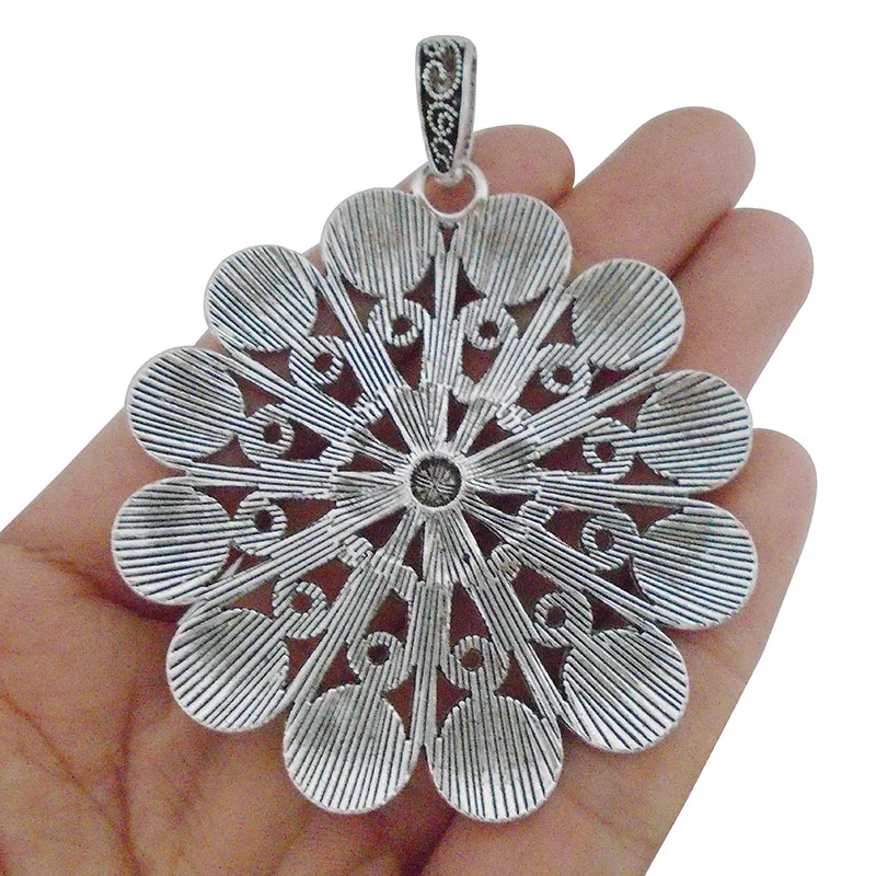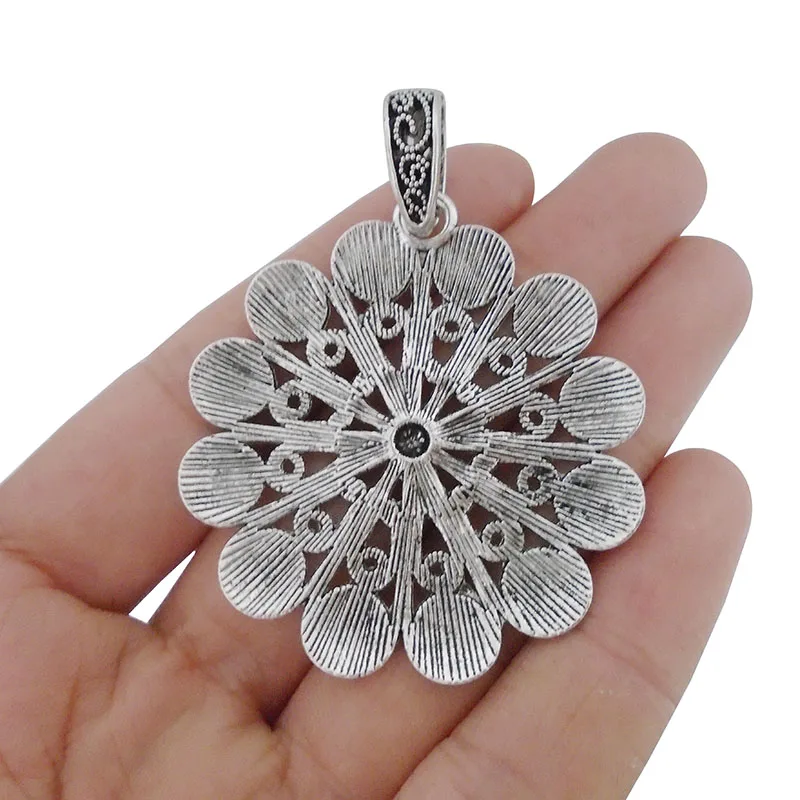 ZXZ 2pcs Antique Silver Tone Large Flower Charms Pendants for Necklace Jewelry Making Findings