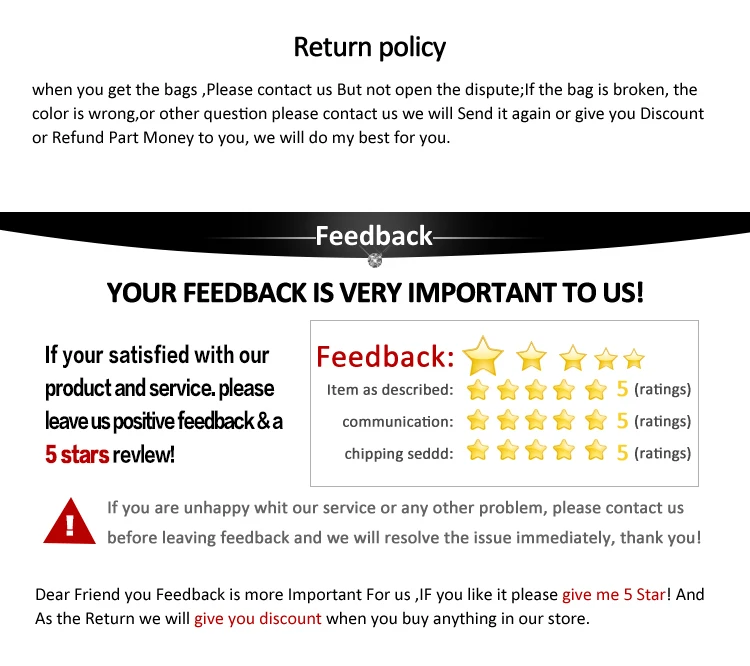 • If you did not receive the product within the guaranteed time( 45 days not including 2-5 day processing) you can request a refund or a reshipment.