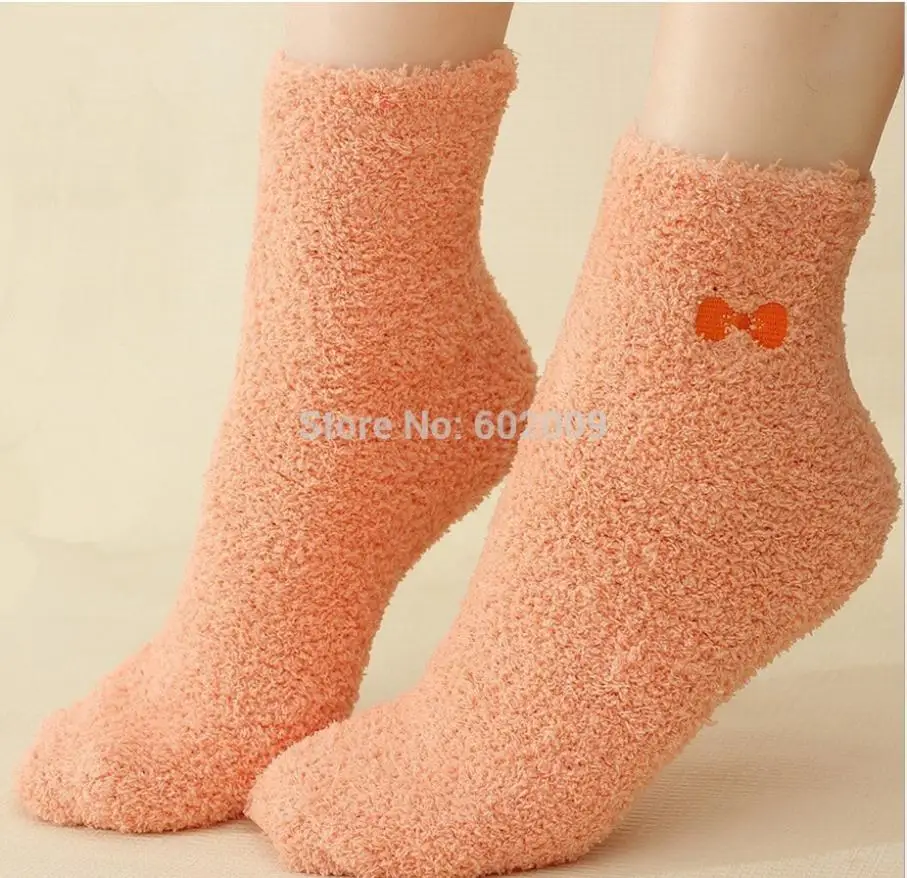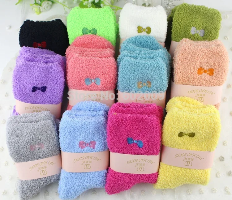 ZYFPGS 6 pairs=1 lot Winter Velvet Warm Women Socks Colorful Cute Kawaii Bow Fuzzy Art Casual Female Socks MF7596232