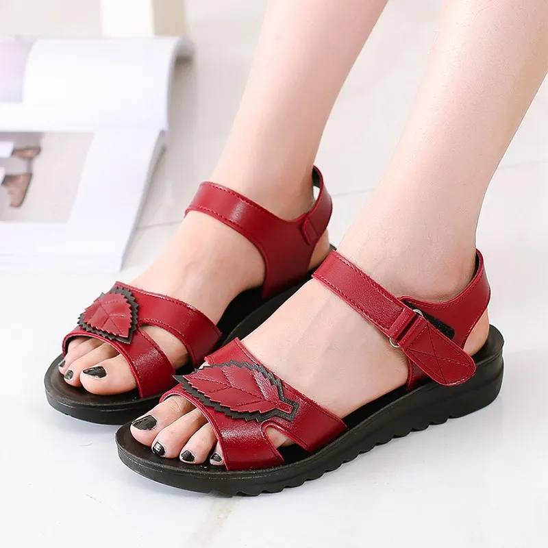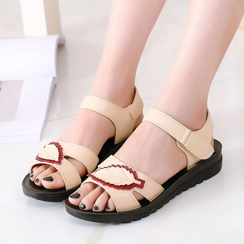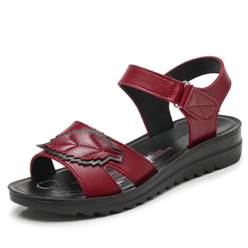 ZZPOHE 2017 summer new fashion Woman sandals mother large size Flat leather Sandals slip comfort elderly Soft bottom sandals