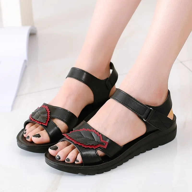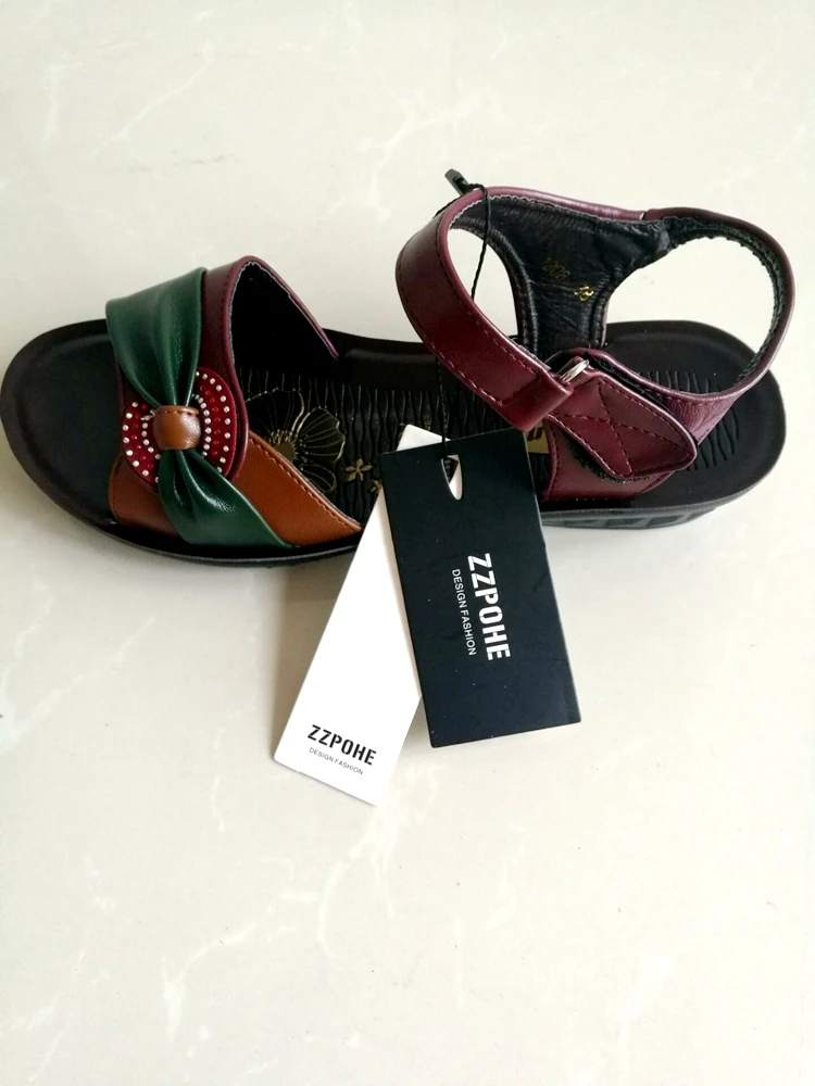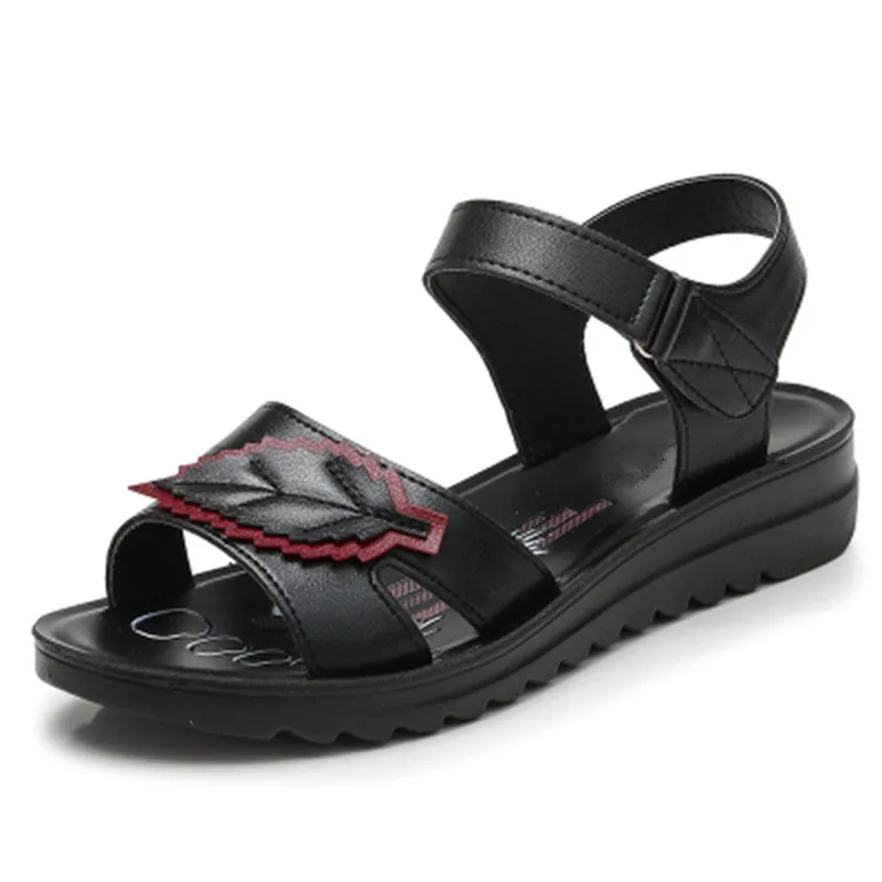 ZZPOHE 2017 summer new fashion Woman sandals mother large size Flat leather Sandals slip comfort elderly Soft bottom sandals