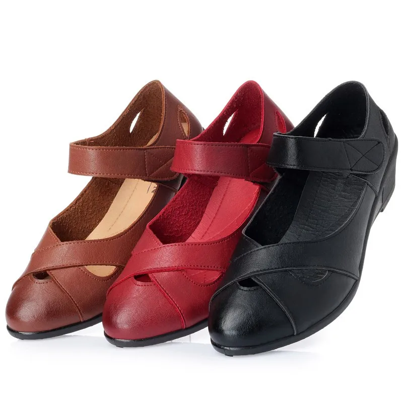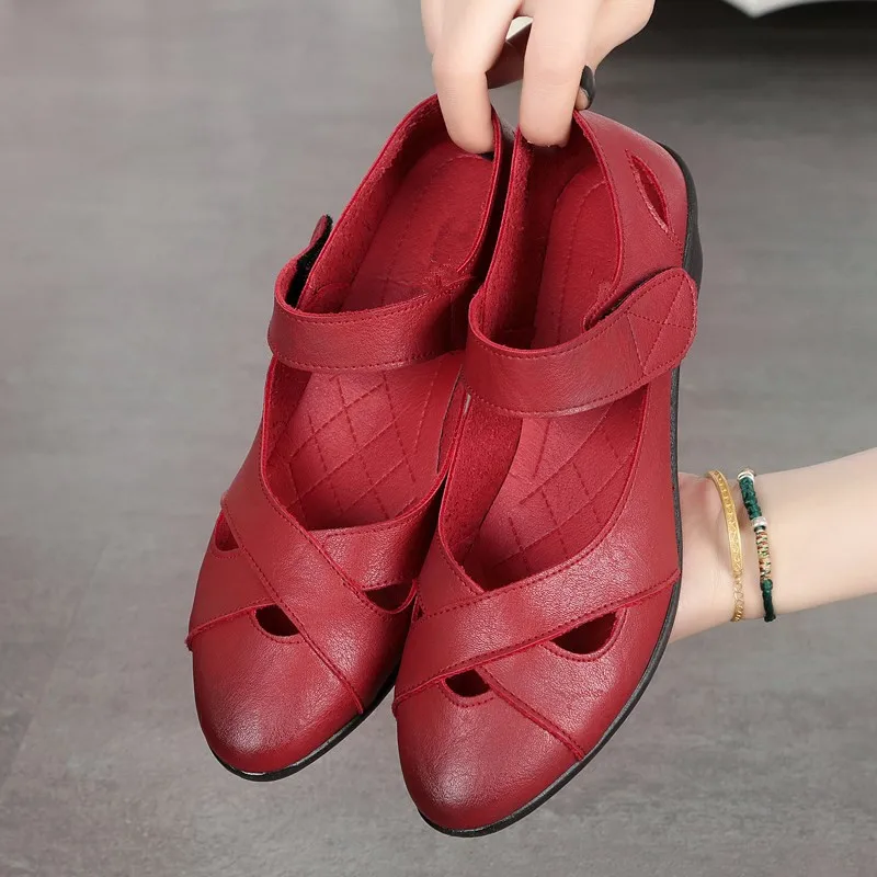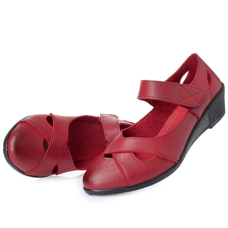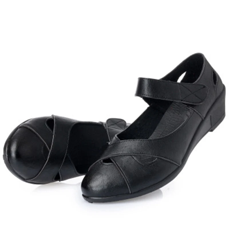 ZZPOHE 2018 summer shoes women leather casual wedges shoes sandals women’s open toe pumps mother comfortable sandals