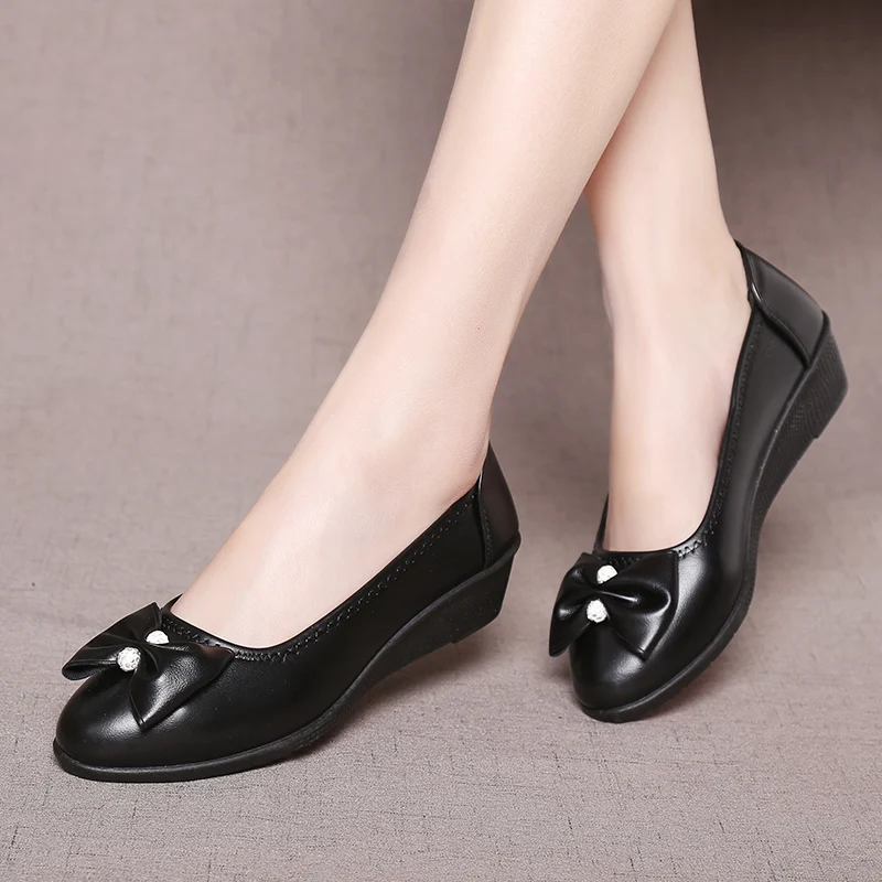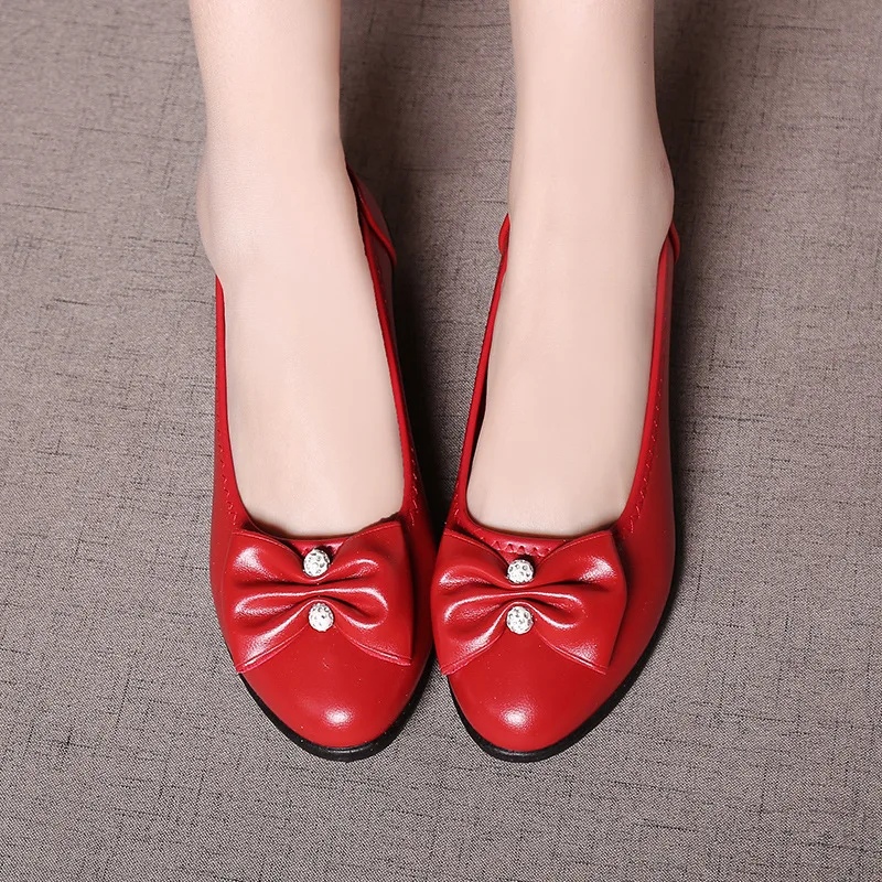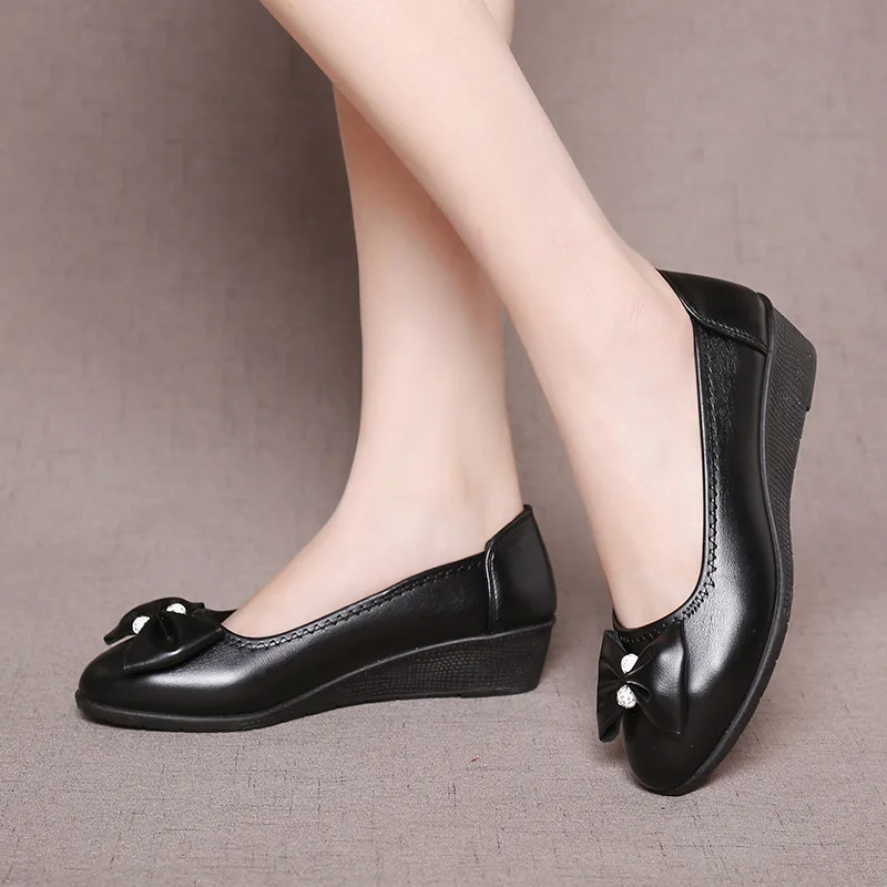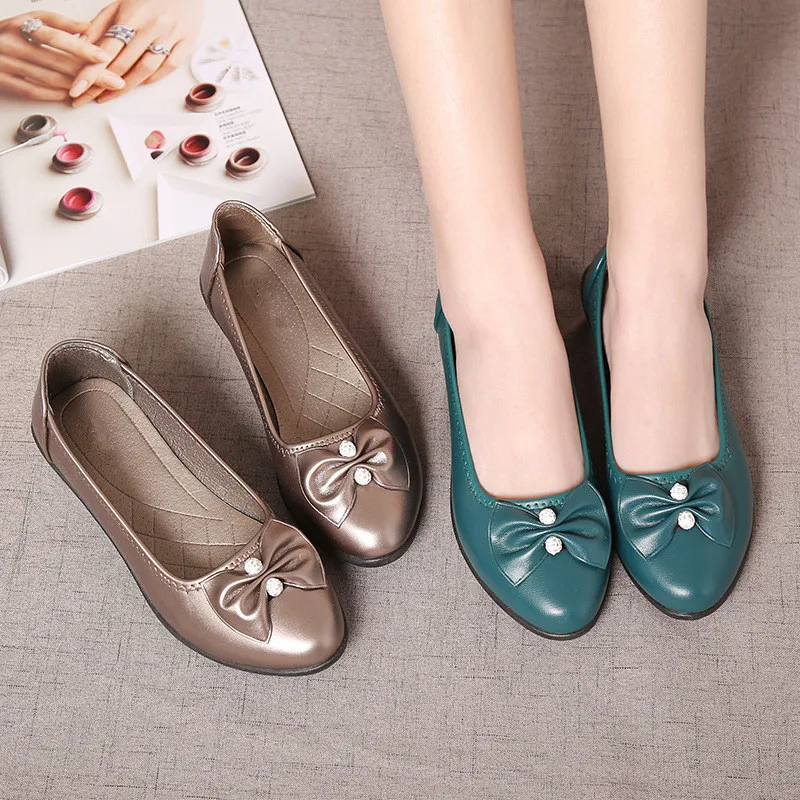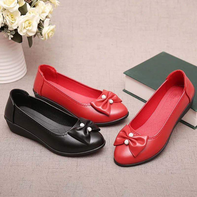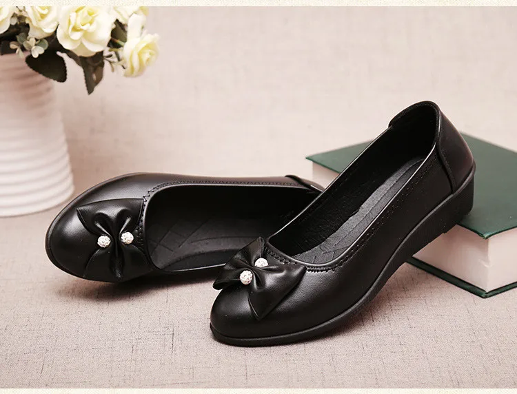 ZZPOHE Spring Autumn new women leather work shoes mothers fashion soft leisure single shoes comfortable large size ladies shoes