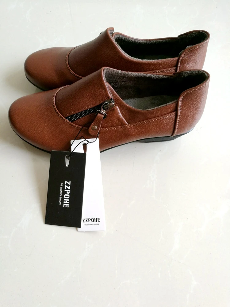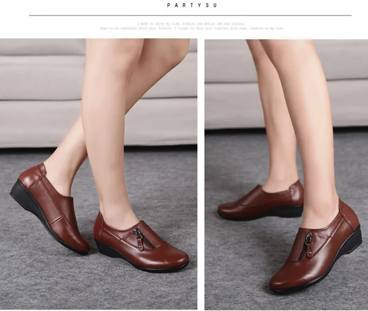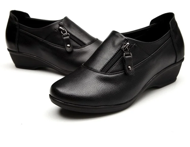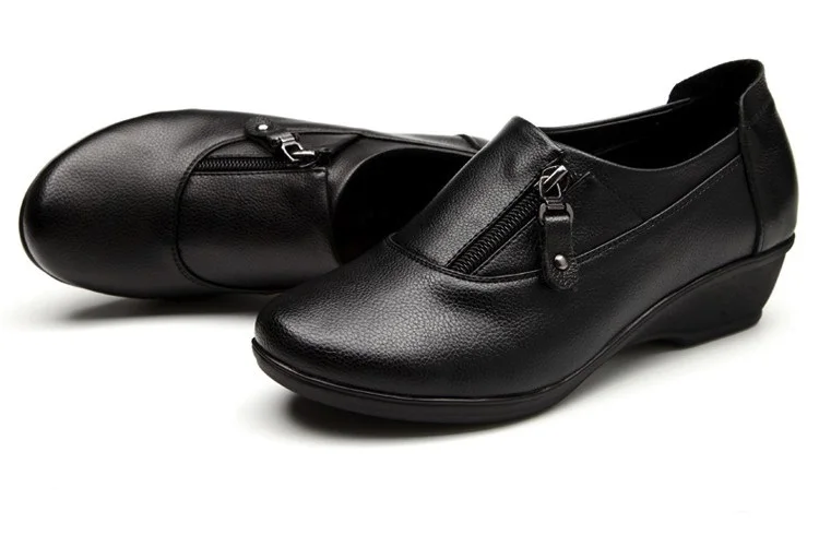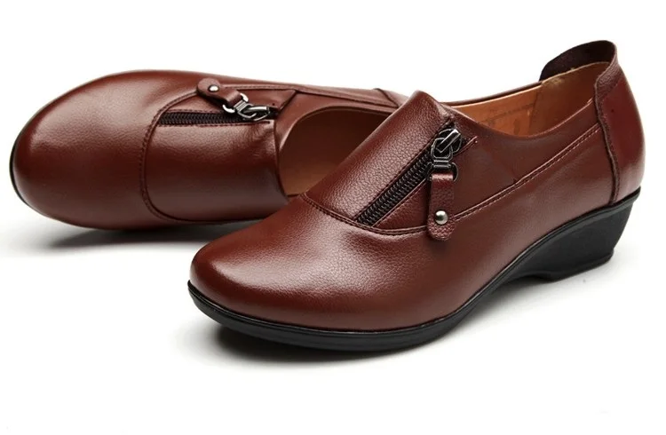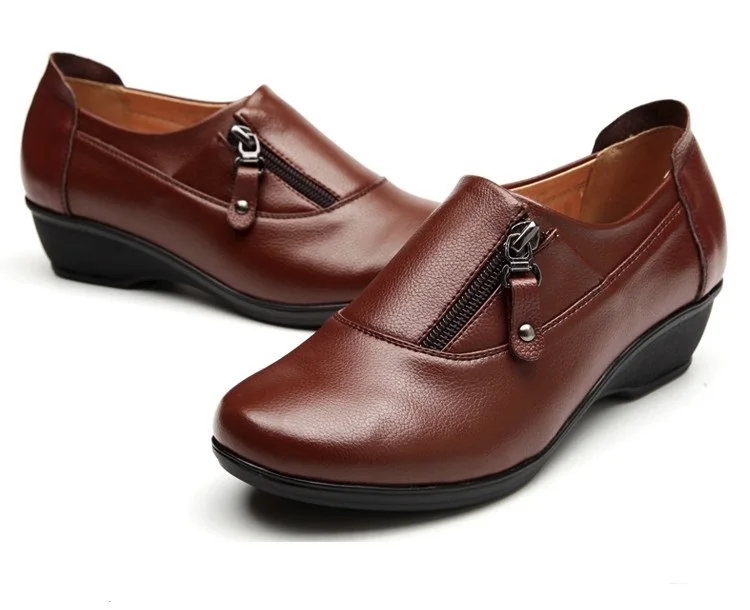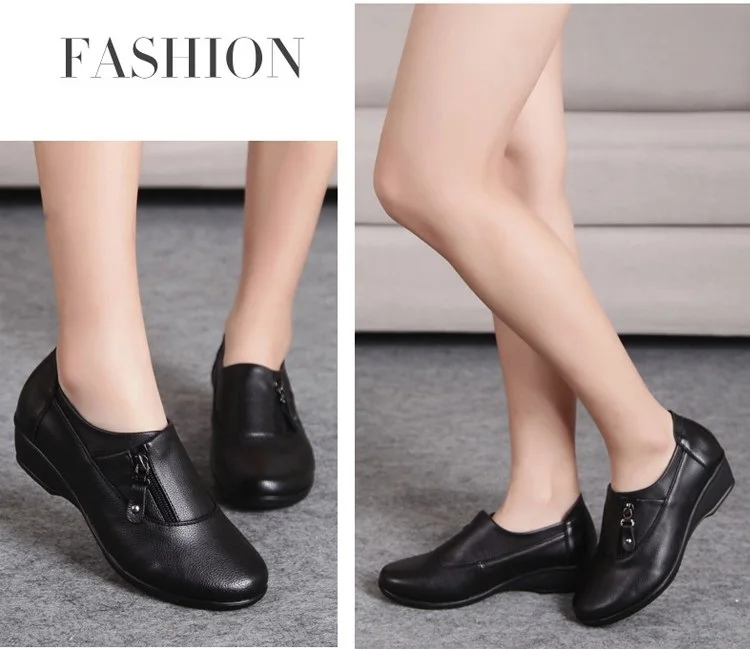 ZZPOHE Spring Fashion leather women shoes mother slope soft bottom anti-slip comfortable middle aged casual shoes Plus Size42 43