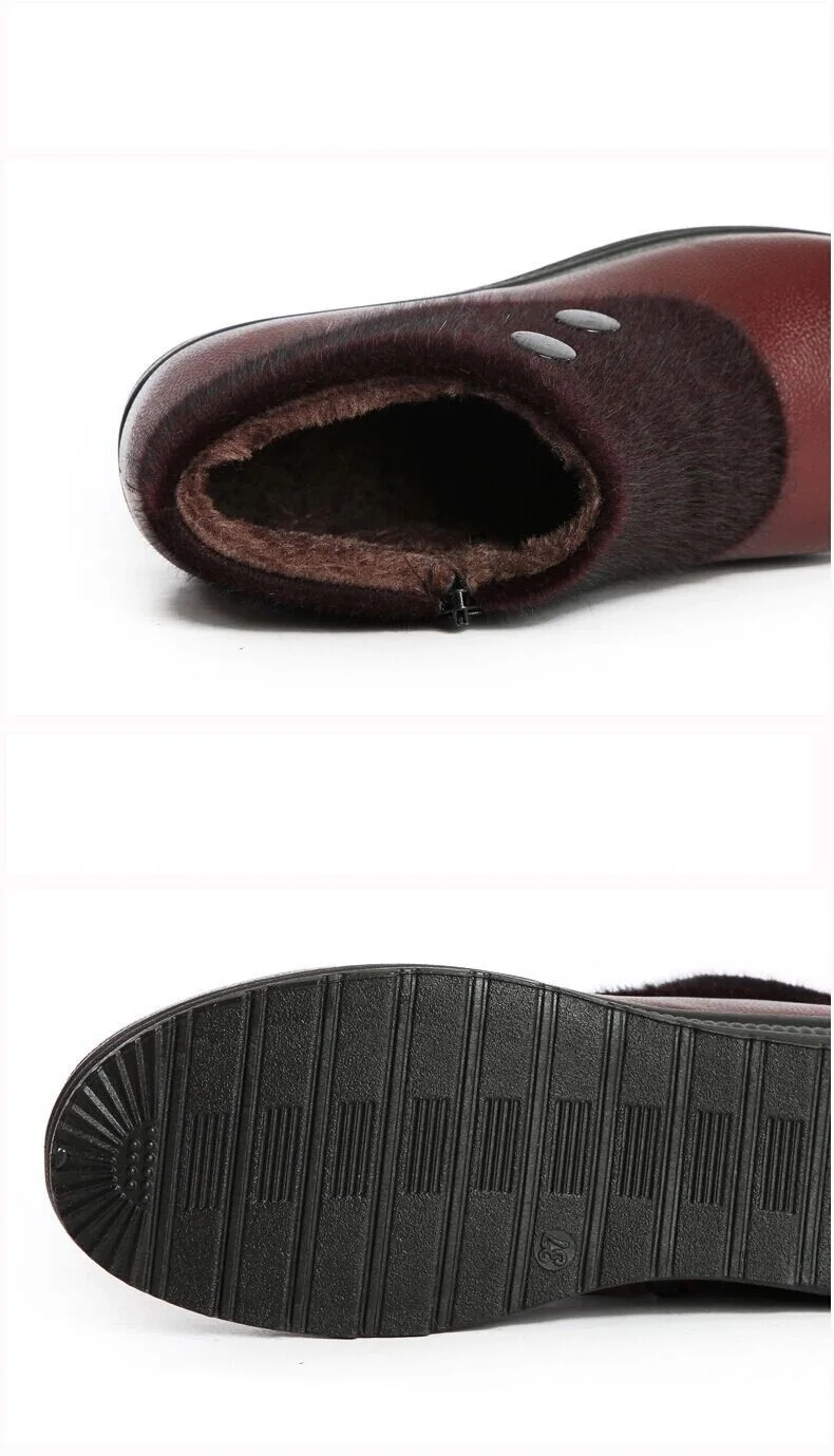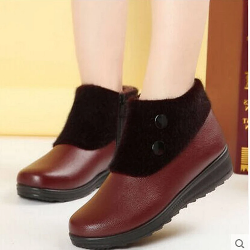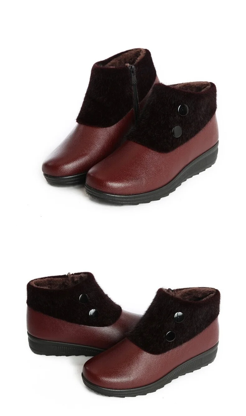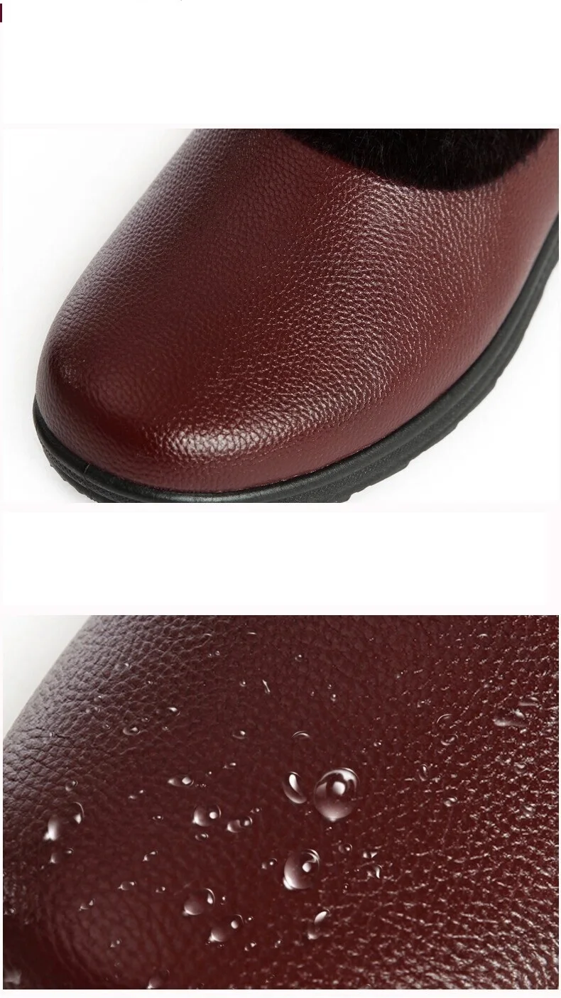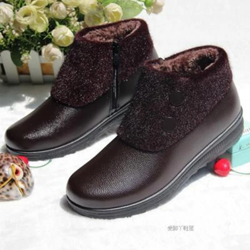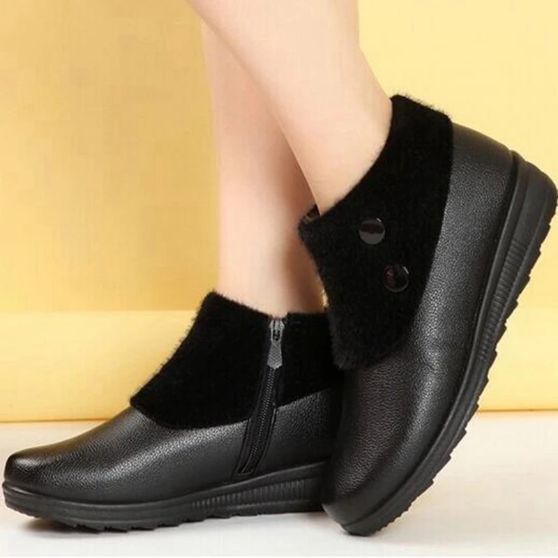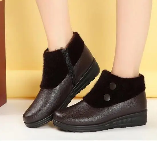 ZZPOHE Women Boots Fashion PU Leather Mother Flat Boots Women Warm Ankel Snow Boots Winter Soft Comfortable Female Cotton Boots