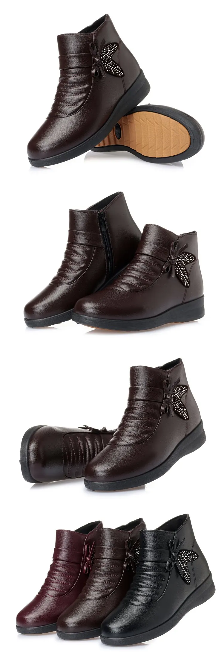 ZZPOHE Women Winter Boots Woman Fashion Casual Wedges Ankle Boots Women Flat Warm Snow Boots Ladies Cotton Shoes